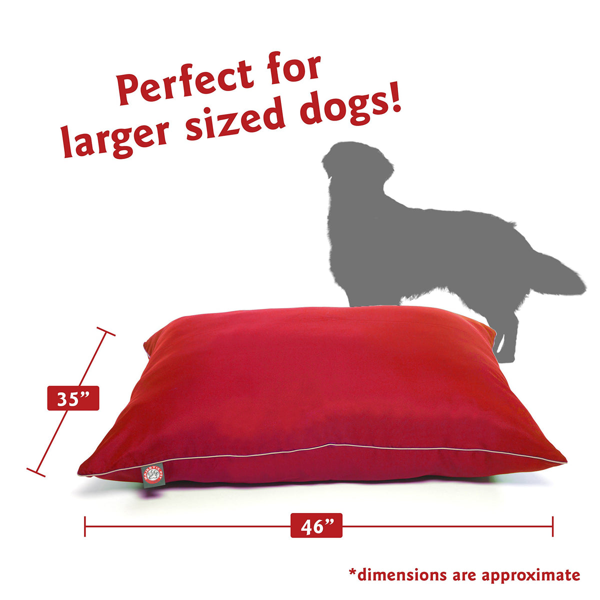Majestic Pet Product Large Super Value Pet Dog Bed (46 inch x 35 inch)Dimensions: 46 inch L x 35 inch W approx.Cushion: 7 inch high approx.Outside material: PolyesterInside material: Premium High Loft Polyester Fiber FilRecommeded Pet Weight: 45 - 70 poundsWashing Instructions: Machine washable in an oversize open-drum washer only on gentle cycle; air dry. Washing machines with agitators will damage the bed.We, at Majestic Pet Products, agree with you: comfort is a must have when taking care of dogs and pets, no matter their age or size.Recovery is a big part for the dog to stay healthy and increase longevity.And that's why we offer a super comfortable rectangular-shaped pet beds at a very affordable, Super Value price!All in soft, comfortable construction for their maximum comfort.