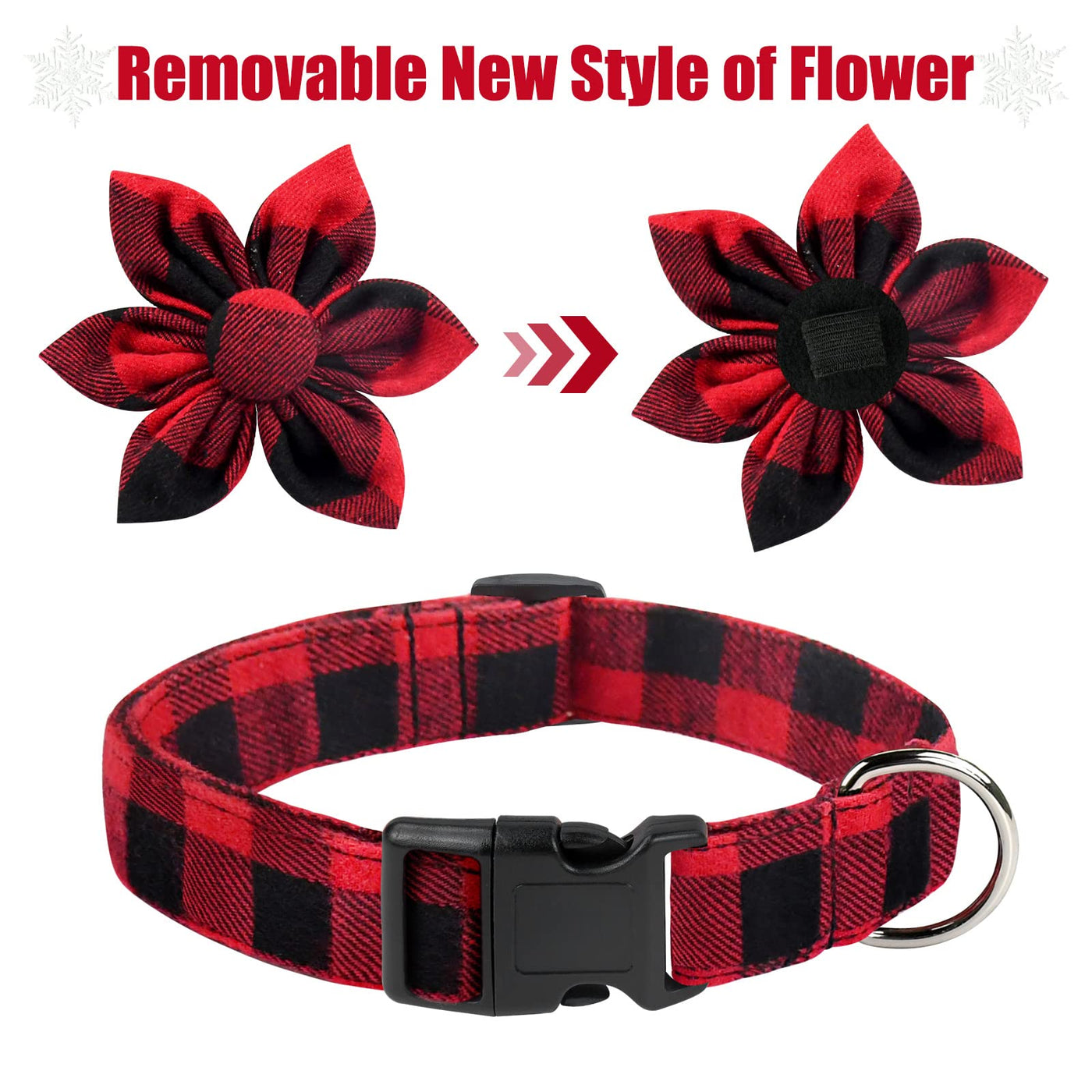 ?Classic Plaid Dog Christmas Collar?Unique classic buffalo red plaid dog collar with flower fashion and novelty. The flower has strap which can be easily removed from the collar and can be attached to other collar. Cute dog collar give you and your pets new experience of walk the dog it is the best gift for your pets.