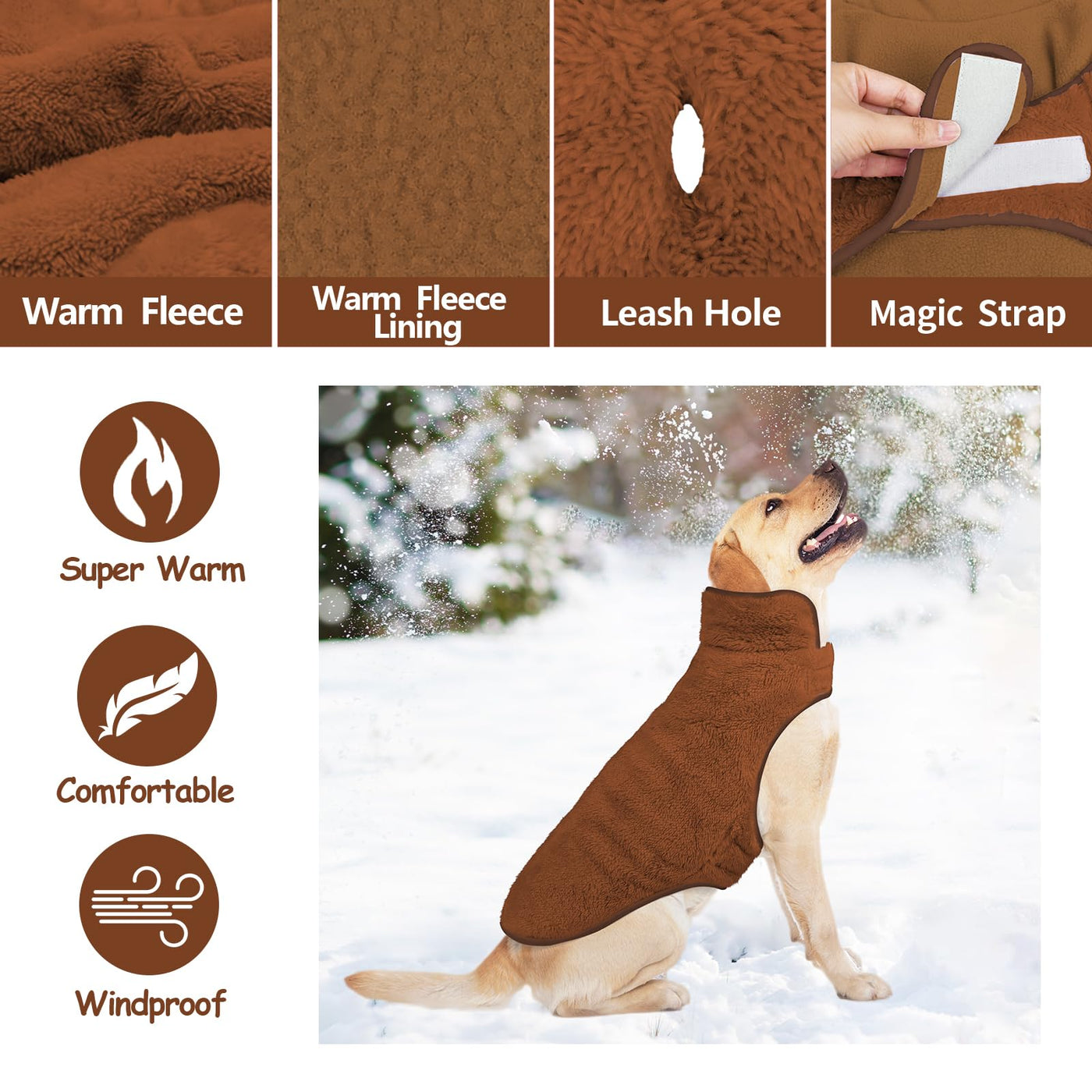 Malier Reversible Fleece Dog Coat, Windproof Warm Jacket For Dogs, Snow Vest - Brown, X-Small