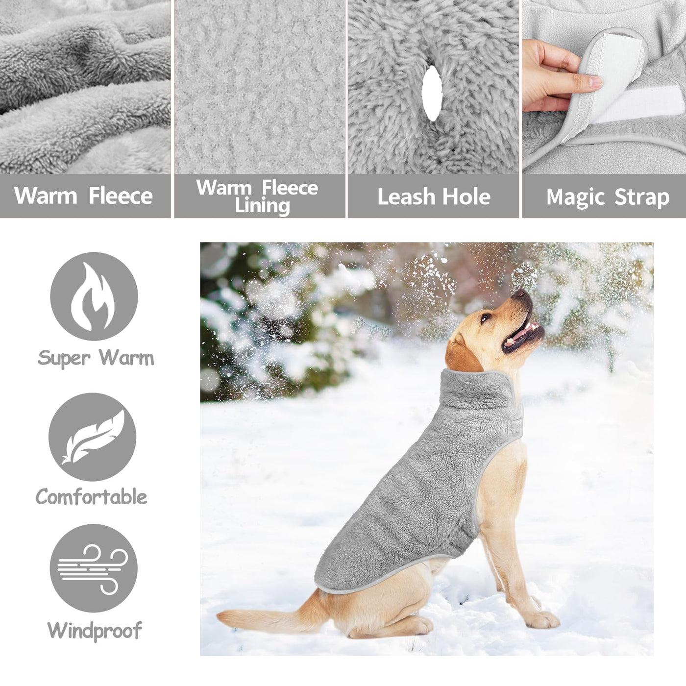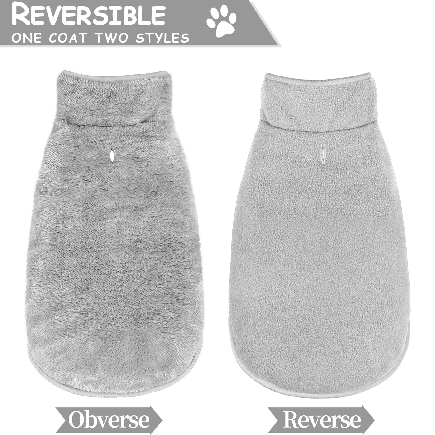 Malier Reversible Fleece Dog Coat, Windproof Warm Jacket For Dogs, Snow Vest - Gray, Medium