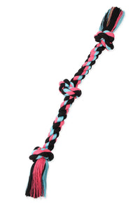 Mammoth Flossy Chews Cottonblend Color 3-Knot Rope Tug is a flossy braided rope chew toy that your dog will love.This multi-colored cloth rope can support your dog's dental health with regular play. When your dog bites down on this toy, the flossy rope scrapes plaque and tartar off of your dog's teeth in even the most deep recesses of his mouth.Mammoth Flossy Chews Cottonblend Color 3-Knot Rope Tug is perfect for interactive play with your dog in games like tug-of-war or fetch. This toy is 20 inches long with three knots, but a larger 36-inch Rope Tug with 5 knots is also available. Your dog will love this rope toy, so order it today!Key Features:Promotes dental health with flossy ropeGreat for interactive play20 inches long with 3 knots