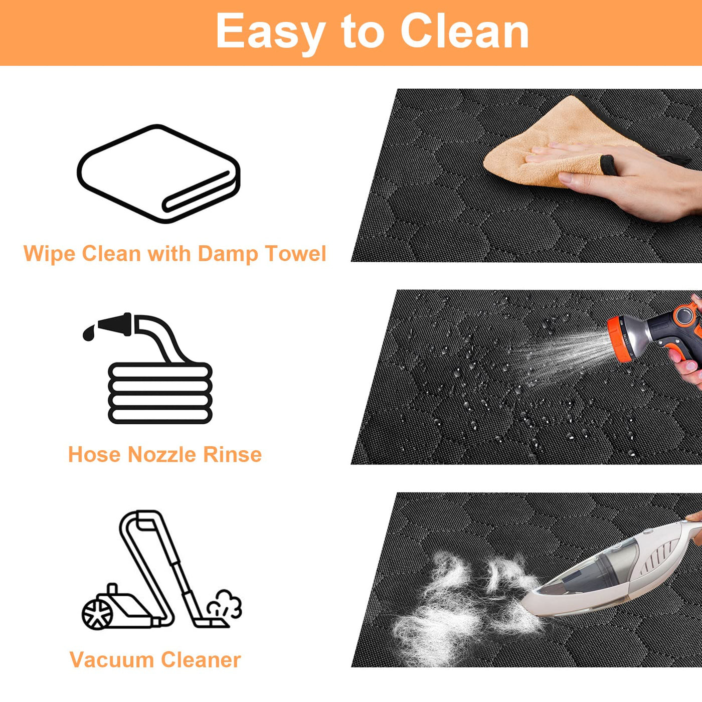 Q: Can I clean the pet cargo cover easily?A: Yes, the Mancro SUV Cargo Liner is very easy to clean. You can simply wipe it down with a damp cloth, use a hose, or vacuum it to remove hair and dirt.