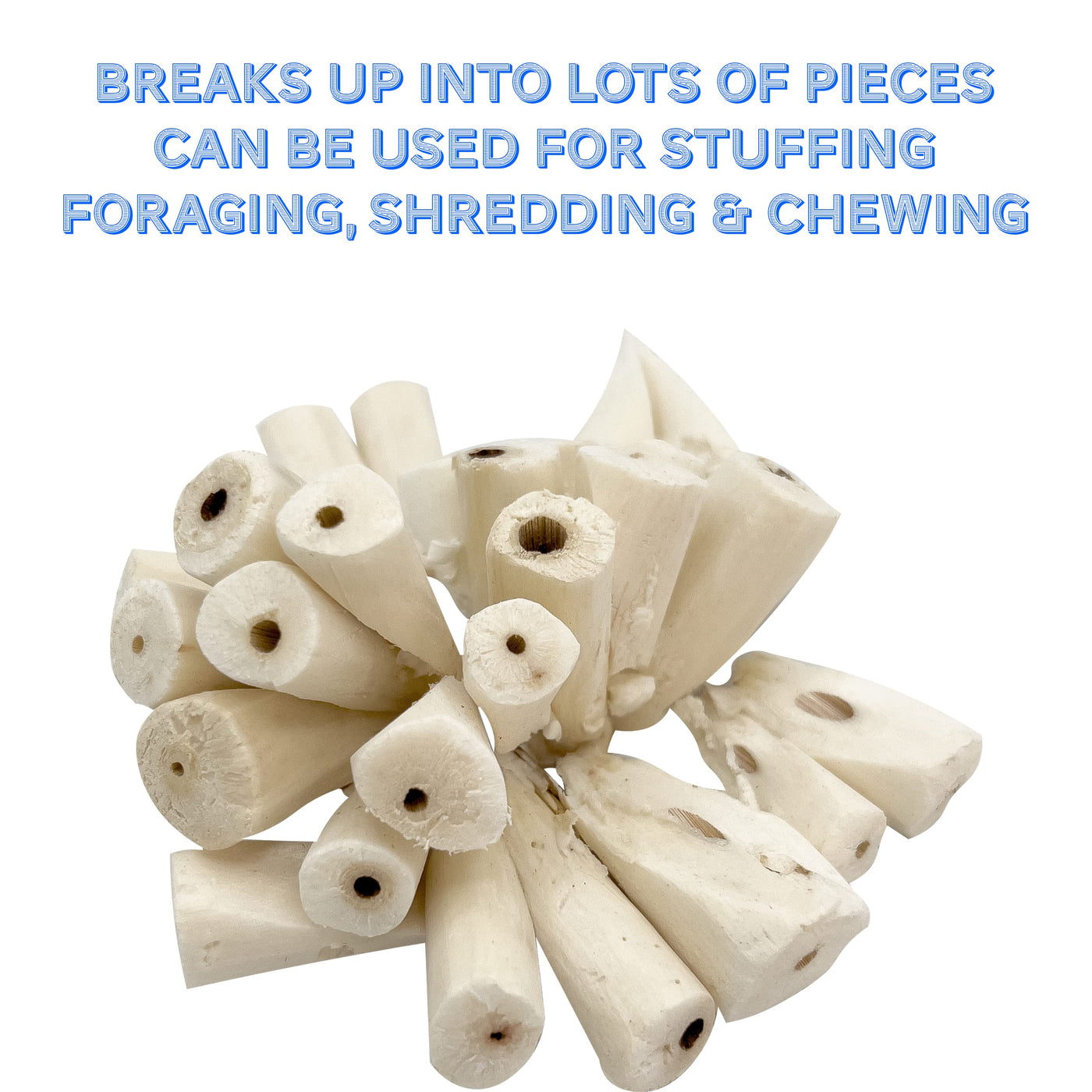 The 5101 Pk3 Big Sola Bird Balls from M&M Bird Toys are bird loved natural foot toys. These large sized chewable delights measure approximately (3.2) inches in diameter! This bird foot toy includes (3) ready to play with sola balls right from the pack. Each ball is made from air dried pieces of the Sola plant root that are stuck into a sphere form. Sola material comes from the root of a tropical species of plant also known as Shola & Sola Pith Plant. This material is lightweight, easy to break apart, doesn’t create splinters, is perfect for chewing enjoyment and all natural. Sola balls are a classic bird foot toy and great fun for pets to shred. The sola material can be grabbed by beaks and feet and will break apart for chewing beaks of all types and sizes. These larger sized balls are excellent for providing lots of shredding and chewing fun. Sola balls can be used in a ton of different ways to entertain pet birds. The balls are great fun to play with as they are. Break them up for added foraging and chewing material. Even poke holes through the balls and hang them up around the cage for a unique shredding experience. These natural foot toys are on the larger size making them ideal foot toys for medium to large pets. Each ball is made from natural bird safe Sola plant. As these are natural items each ball will vary very slightly in shape, size and weight. Approximate Specifications: Single BallDiameter: (3.2) inches Single Ball Weight: Under (2) ounces Bird safe natural air dried foot toys