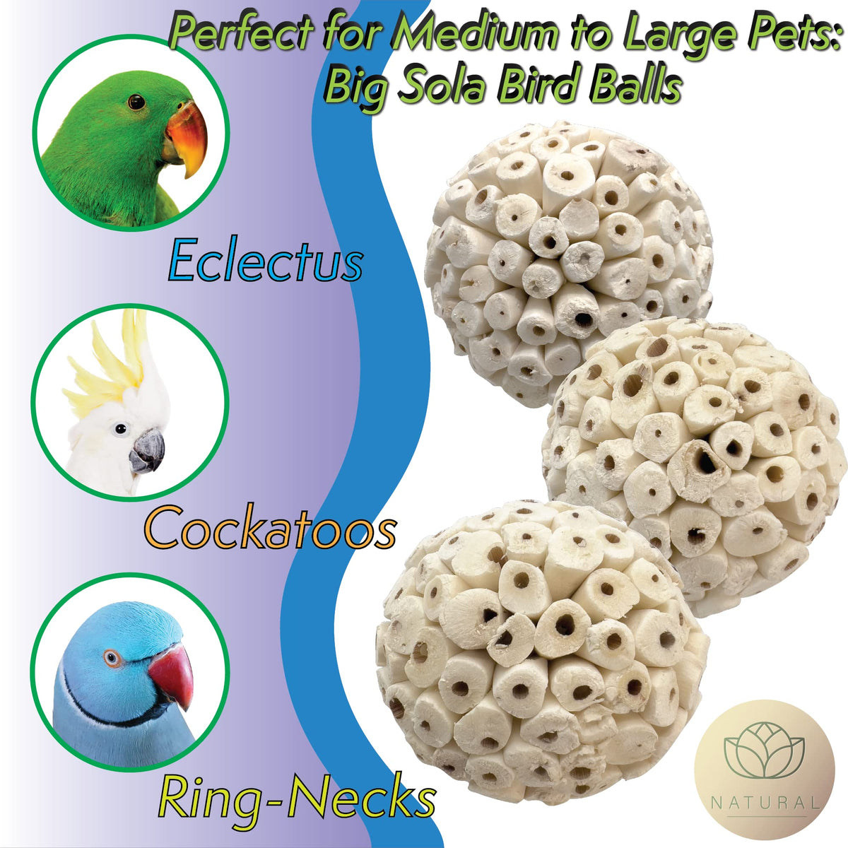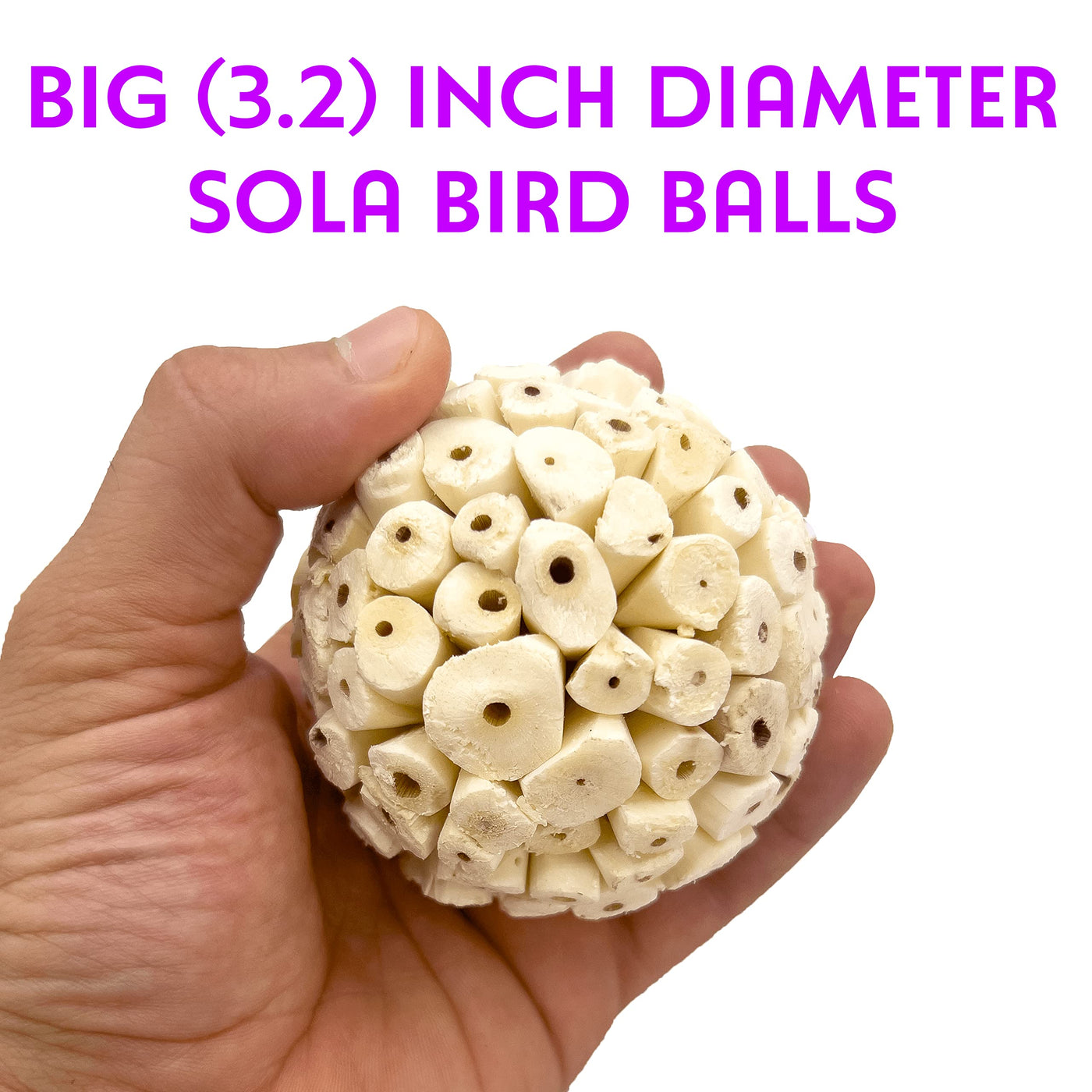 Mandarin Bird Toys 5101 Big Sola Bird Balls Pk3 By M&M - All Natural Air Dried Chewable Spheres, Lightweight Pithy Bird Safe Material, Great Fun For Beaks And Feet, Ideal For Medium Size Pet Birds