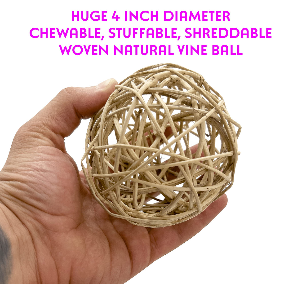 Mandarin Bird Toys By M&M 5070 Mega 4 Inch Natural Vine Ball - Handwoven Natural Rattan Ball, Lightweight, Chewable, Stuffable,
