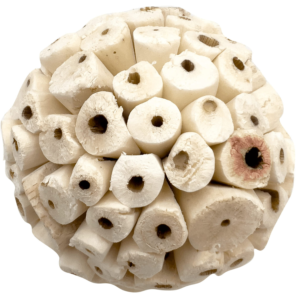 The Small Sola Bird Balls from M&M Bird Toys are delightfully fun to shred foot toys. These small foot toys measure about (2.4) inches in diameter each and are great fun for pets of all types. This bird toy includes (8) small sola bird balls in the pack ready to play with. Each ball is made from air dried pieces of Sola wood which is crafted into a sphere form. Sola wood comes from the species of plant also known as Shola & Sola Pith Plant. This wood is lightweight, easy to break apart, doesn’t create splinters, is perfect for chewing enjoyment and all natural. Sola balls are a classic bird foot toy and great fun for pets to shred. The sola wood can be grabbed by beaks and feet and will break apart for chewing beaks of all types and sizes. These larger sized balls are excellent for providing lots of shredding and chewing fun. Sola is a very versatile bird toy material. The sola balls are great fun to play with as they are or combined with other toys. As the balls are very light allowing pets of all types will be able to pick them up and throw them about. Break up the balls for added foraging and shredding material. Even drill holes in the balls and string them up around the cage or from other toys for shredding fun! These small sized balls are very versatile and bird appealing making them the perfect foot toys. Each ball is made from natural sola wood. As these are natural items each ball will vary very slightly in shape, size and weight. Approximate Specifications: Single Ball Diameter: (2.4) inches Single Ball Weight: Under (0.5) ounce Bird safe natural air dried foot toys Individually hand packed by Mai in our small Florida shop