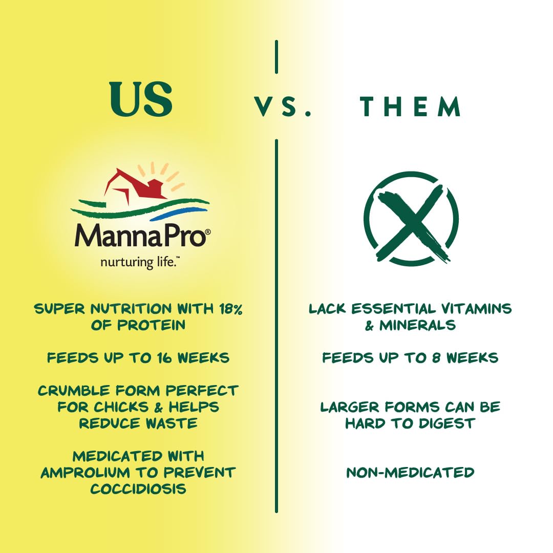 SUPERIOR NUTRITION - Manna Pro Medicated Chick Starter Grower guarantees 18% protein to support weight gain and muscle development