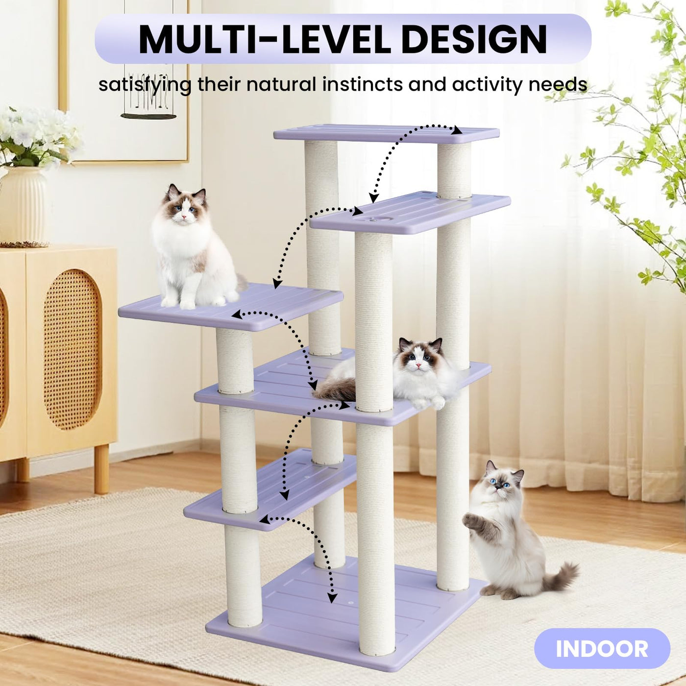 Maohegou 6 Level Cat Tree 22 X 20 X 46 The Color Is Light Purple, Suitable For Both Indoor And Outdoor Use, And It'S Made Of Polypropylene Rope.The Weight Is 26.4 Pounds