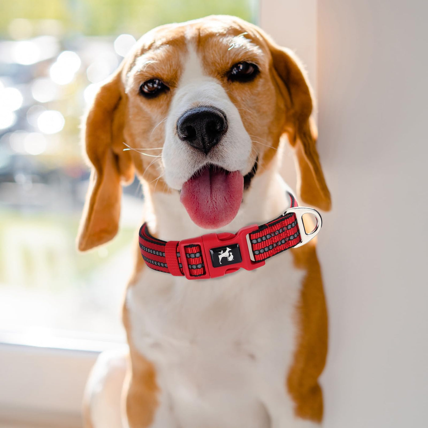 Keep Your Dog Safe, Comfortable, And Stylish With Our Reflective Dog Collar! Our Reflective Dog Collar Is Designed To Meet The Needs Of Pet Owners Who Prioritize Safety, Comfort, And Style. Whether You Have A Small, Medium, Large, Or Extra-Large Dog, This Collar Is The Perfect Choice For Everyday Walks, Outdoor Adventures, Or Nighttime Outings. High Visibility For Safety: The Reflective Stitching Ensures Your Dog Is Visible In Low-Light Conditions, Providing Peace Of Mind During Evening Walks Or Early Morning Jogs. Ultimate Comfort: The Soft Neoprene Padding And Breathable Nylon Material Prevent Chafing And Irritation, Ensuring Your Pet Stays Comfortable All Day Long. Durable & Adjustable: Made From High-Quality Nylon, This Collar Is Built To Last. The Adjustable Strap Fits Dogs Of All Sizes, While The Sturdy Buckle Ensures Security. Perfect Gift For Pet Lovers: With Its Cute And Stylish Design, This Collar Makes An Excellent Gift For Dog Owners. Its Suitable For Boys, Girls, And Adults Who Love Their Furry Companions. Ideal For All Occasions Whether Youre Taking Your Dog For A Walk In The Park, Going On A Hike, Or Simply Spending Time At Home, This Collar Is Designed To Keep Your Pet Safe And Comfortable. Its Versatile Design Makes It Suitable For All Breeds And Sizes, From Small Puppies To Large Adult Dogs. Specifications: Material: Neoprene Padding + Breathable Nylon Sizes: Adjustable For Small, Medium, Large, And Extra-Large Dogs Features: Reflective Stitching, Durable Buckle Colors: Available In Multiple Stylish Colors Give Your Dog The Comfort And Safety They Deserve With Our Reflective Dog Collar. Order Now And Make Every Walk A Safe And Enjoyable Experience For Your Furry Friend!