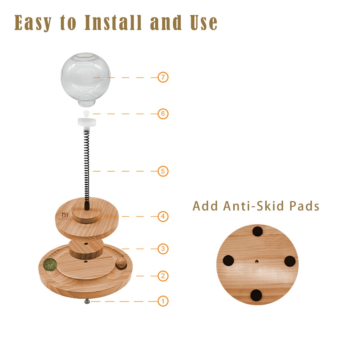 Marchul Cat Ball Toy With Treat Ball, Kittentreat Dispenser Toy With Roller Track Catnip Balls, Interactive Cat Toys Wooden For