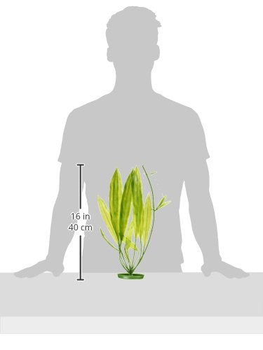 DescriptionLet the Marina Aquascaper plastic Amazon Sword plant add some lush, colorful landscape to your fish aquarium. Design your very own aquatic paradise with authentic, realistic-looking plastic aquarium plants, all molded after the real thing. Choose from a variety of styles and colors so you can customize your own stunning aquarium decorations display. Your fish will love them, too! The natural color finish will also not fade and is completely safe for all fish tank occupants. These plants are a great way to provide your pet fish with a fun colorful environment to live in. Unlike real plants for fish tanks the Marina Fake Plants are easy to maintain and clean. For cleaning simply hand wash with warm water. This piece of aquarium décor is designed to be an Amazon Sword Plant and is 15 inches (38.1 cm) tall. For more fish tank accessories check out the other Marina products including aquarium filters, filter media, aquarium heaters, aquarium air pumps, aquarium lights, aquarium rocks, aquarium thermometer, and aquarium stands. Marina has a wide variety of products that are perfect for your pet fish or betta fish to enjoy in any large fish tank, small fish tank or in a freshwater tank.