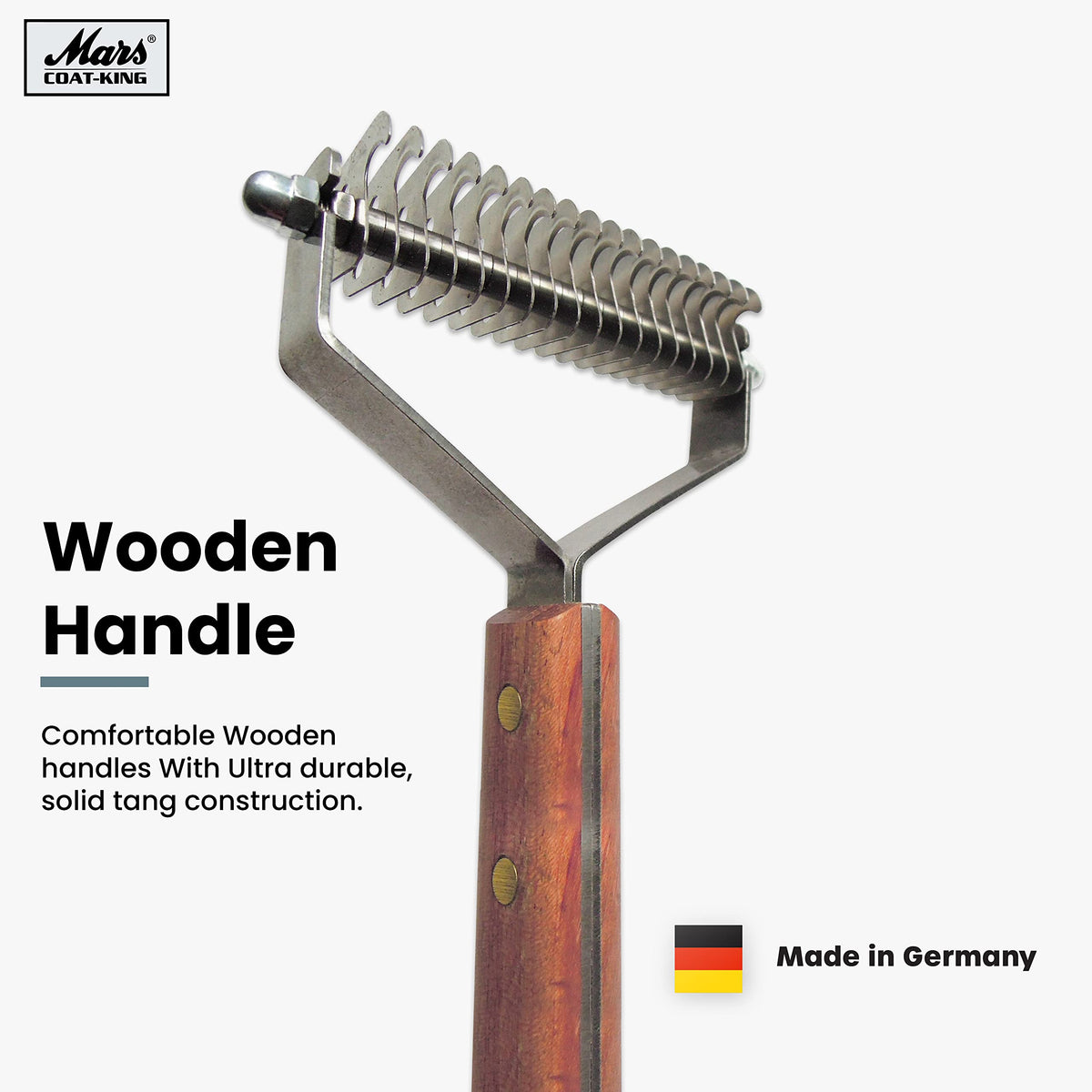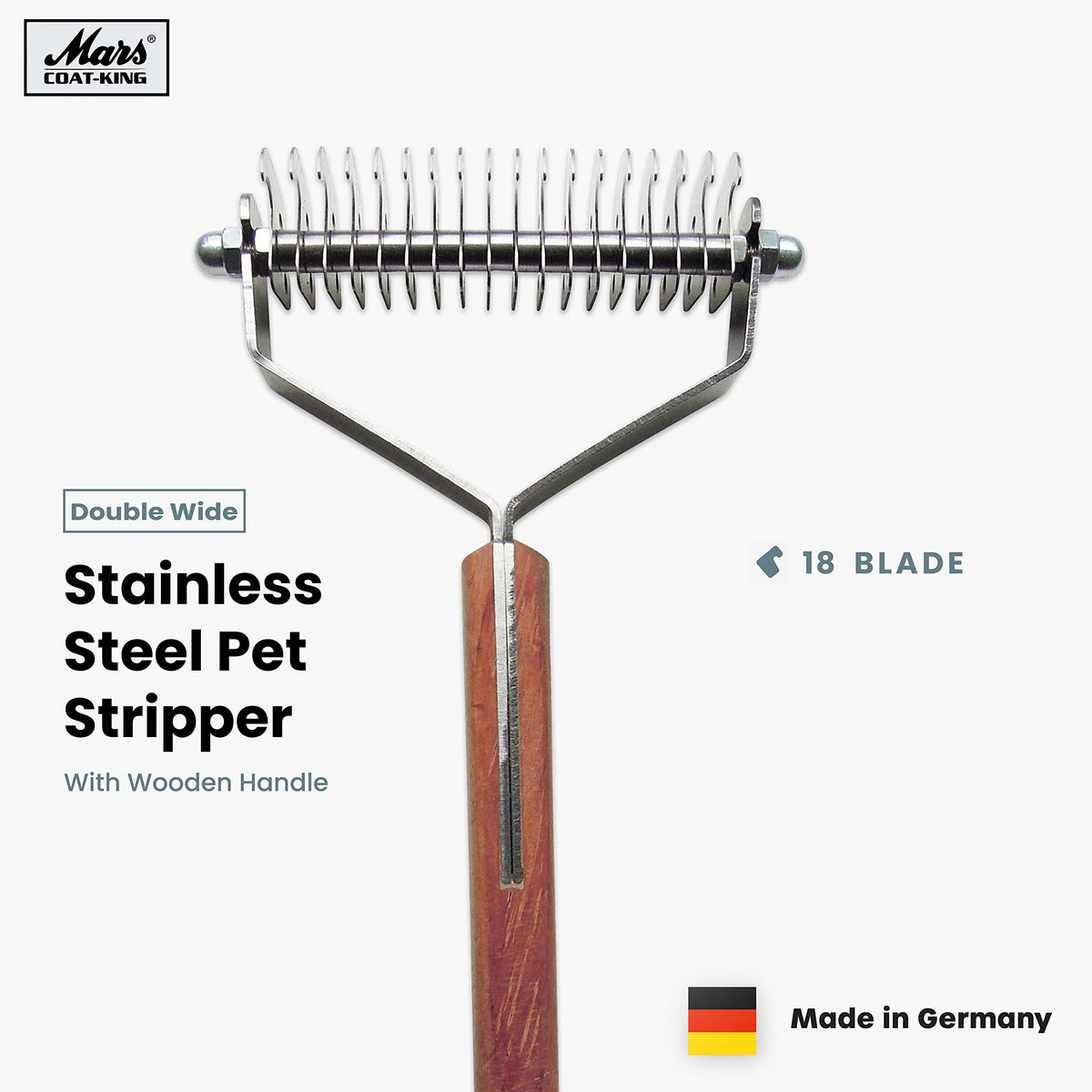 Mars Coat King Double Wide De-Matting Rake Tool for Dogs & Cats, 18-Blade Stainless Steel with Wooden Handle, Grooming Essential