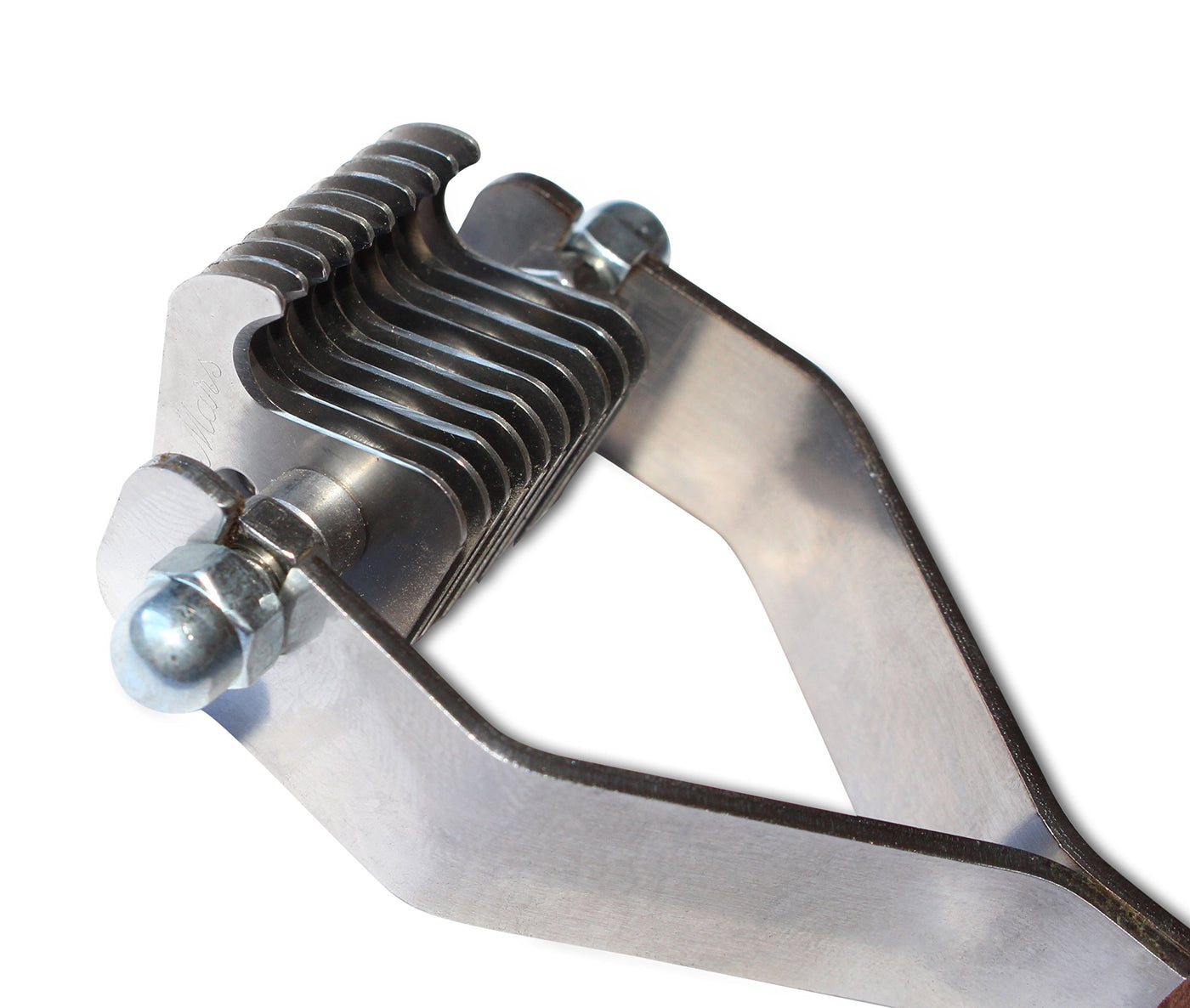 Original MARS Coat King This curry-comb consists of a fine wooden handle (Bubinga, FSC certified) and rust free, tempered high-grade steel blade. ( 10 blades, fine) In this product the blades are completely changeable as the head! The special geometry of the blades guarantees a good penetration in to the fur with proper use, you can effectively and neatly remove around 90% of the loose dead hair with it. Simple application: put on the fur with a subtle pressure, eventually hold against it with the other hand and comb out in the direction of growth (in long strokes) and then remove the hairs from the blade with your hand. Suited for the most delicate work e.g. on the head, also for CATS in complete do-over. Please search your dog in our breed list, with it you can order the right curry-comb for your animal from our varied range. extra fine, 10 ground special blades, fine wooden handle.