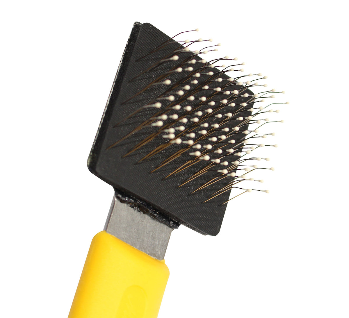 Q: What makes the Mars Flexy-King Soft Flexible Slicker Brush different from regular grooming brushes?A: The Mars Flexy-King Soft Flexible Slicker Brush features a unique opposing working principle where the bristles open during use, allowing for effective detangling without pulling on your dog's fur. This design, along with the spring-steel bristle receptacles, ensures that the brush adapts to your dog's contours for a more comfortable grooming experience.