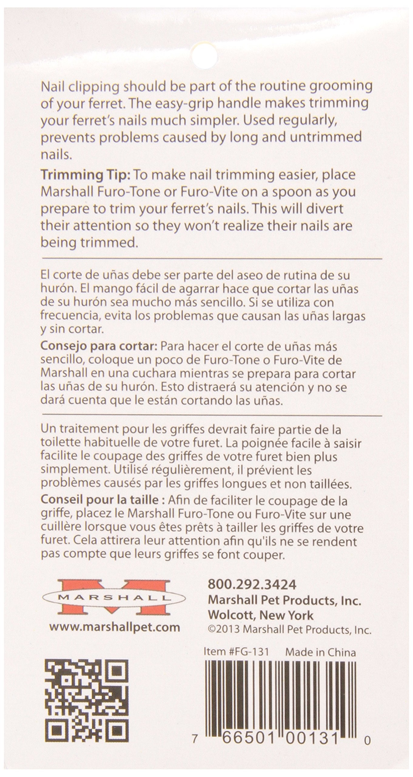 The Marshall ferret nail clippers have an easy to grip handle that makes trimming your squirming ferret easier. Use regularly to prevent problems caused by long untrimmed nails.