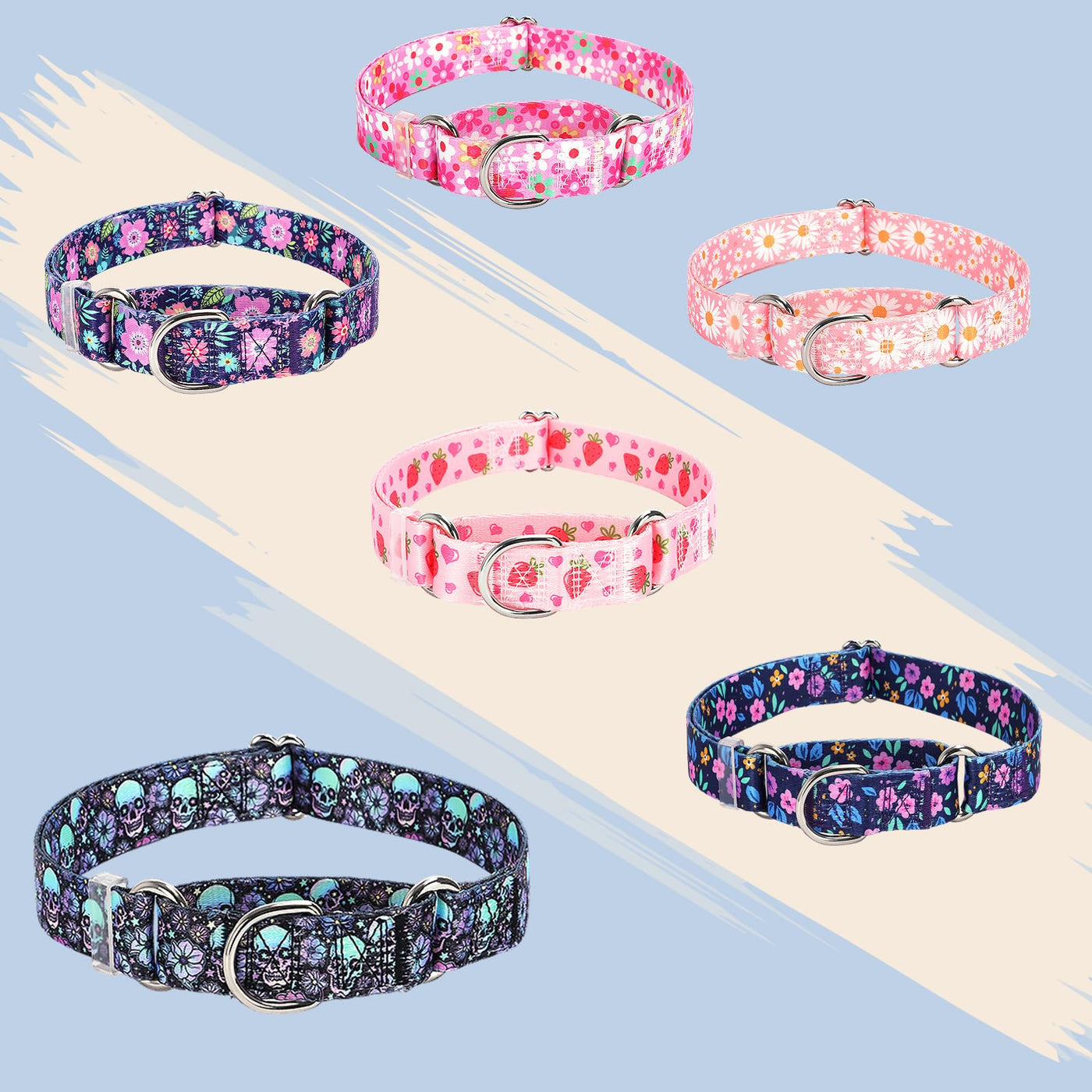 Martingale Dog Collar With Training Control Feature, Martingale Collar Is A Better Alternative To Standard Collar. The Dog Collars Are Made Of High-Density Nylon Webbing, Heavy Duty Hardware. Strict Pulling Test Conducted Before Production. Soft Webbing, Durable, Wear-Resisting And Hypoallergenic, This Dog Collar Would Not Hurt To Dog'S Skin. Metal D-Ring, Strong And Available For All Types Of Dog Leashes. Romantic Pink Color, Lovely Daisy Flowers, Make Your Dog More Charming.