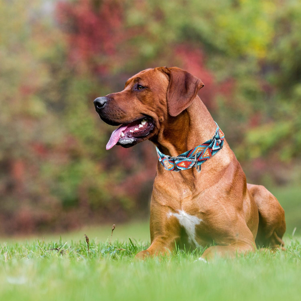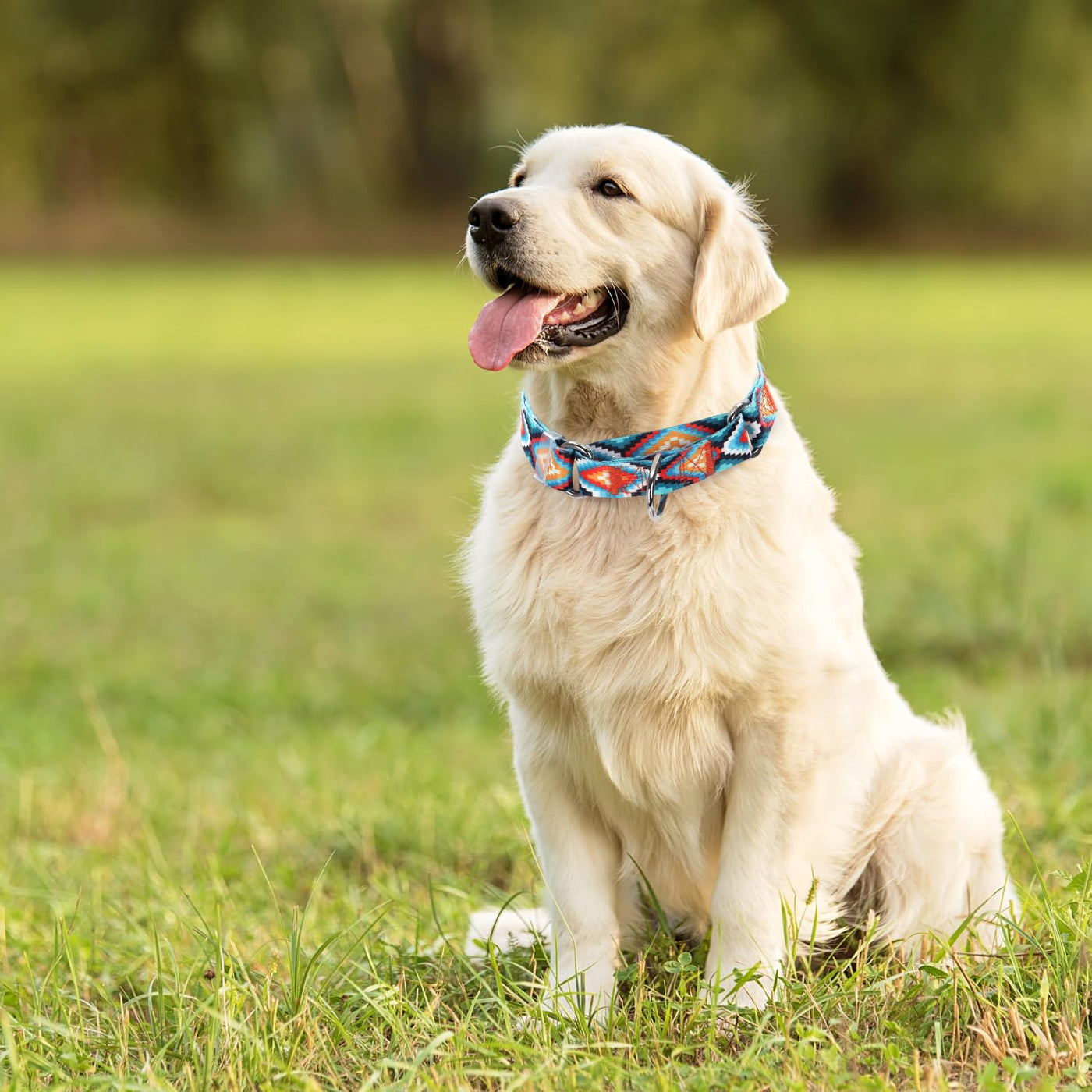Martingale Collar For Dogs Adjustable Heavy Duty Training Collars With Blue African Tribal Mexican Native Boho Pattern, No Slip