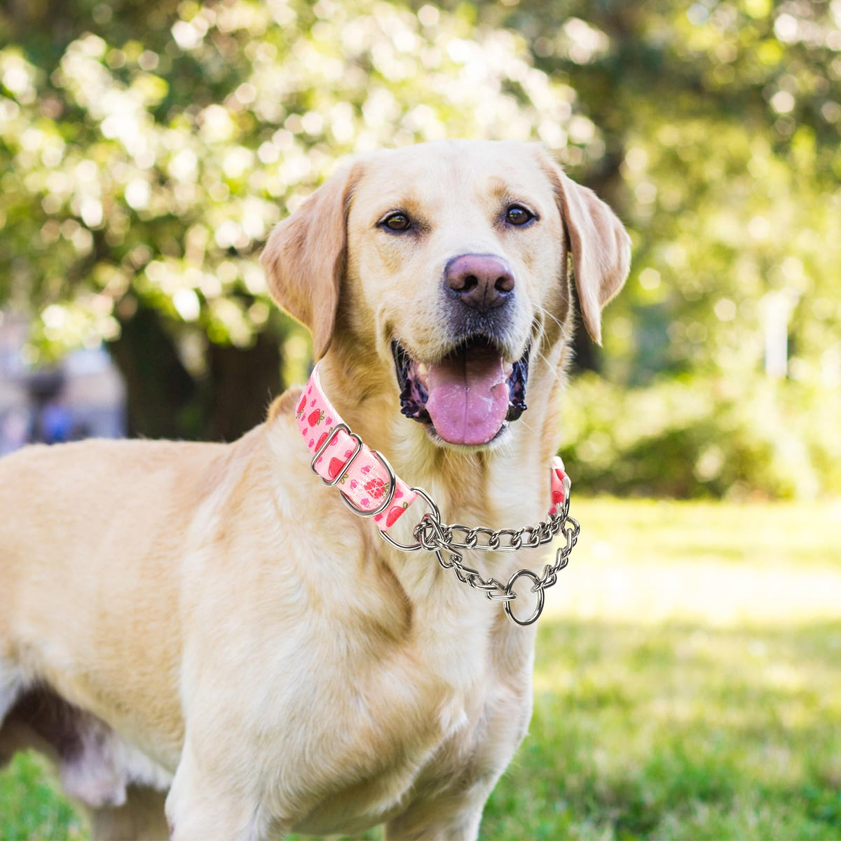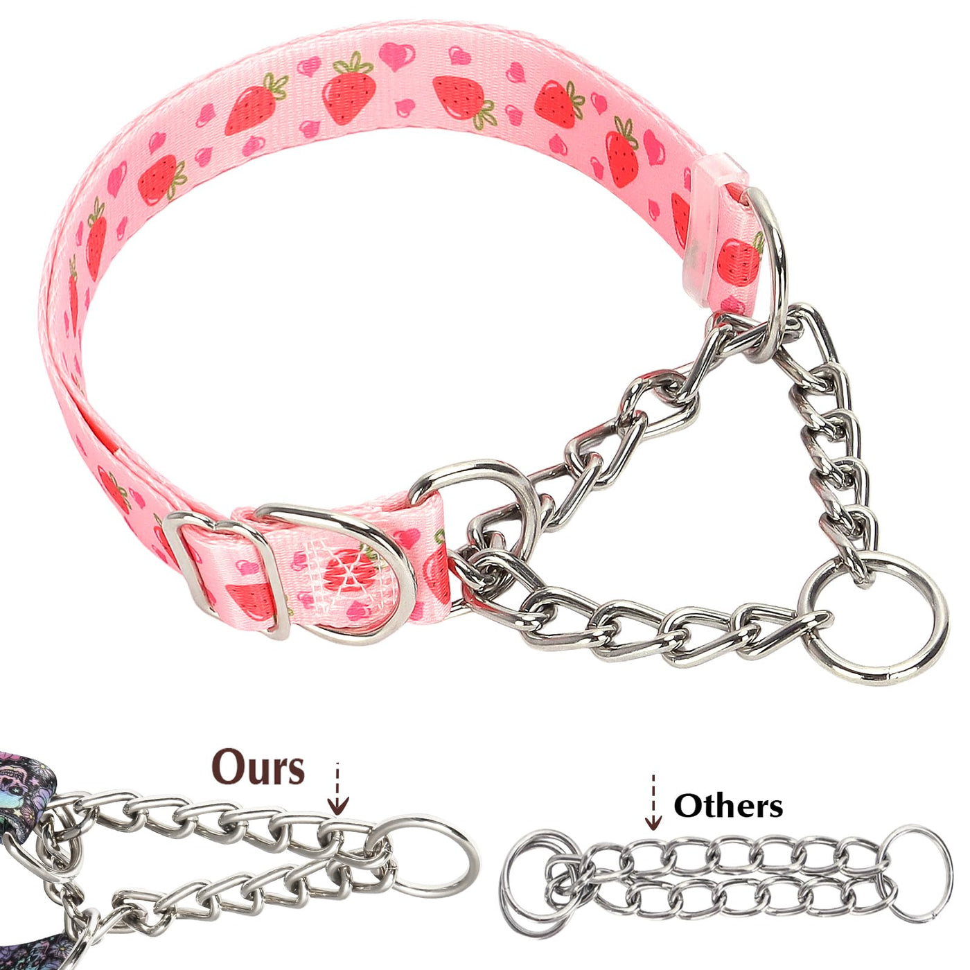 Martingale Collar For Dogs With Nylon & Steel Chain Limited Cinch Design, Pink Strawberries No Choke Dog Collar, Adjustable No P