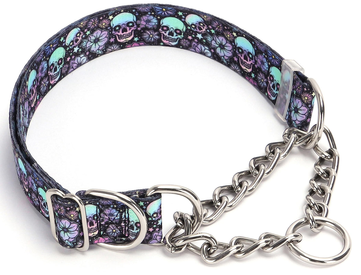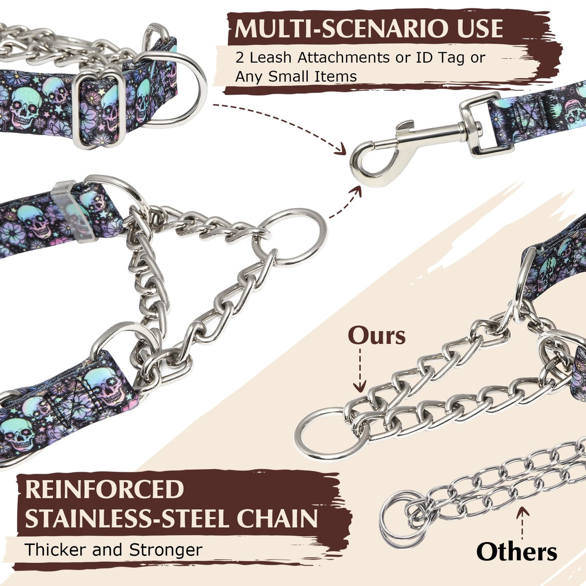 Martingale Collar For Dogs With Skull Design, Trainer Approved Limited Slip Collar With Stainless Steel Chain, Adjustable No Cho