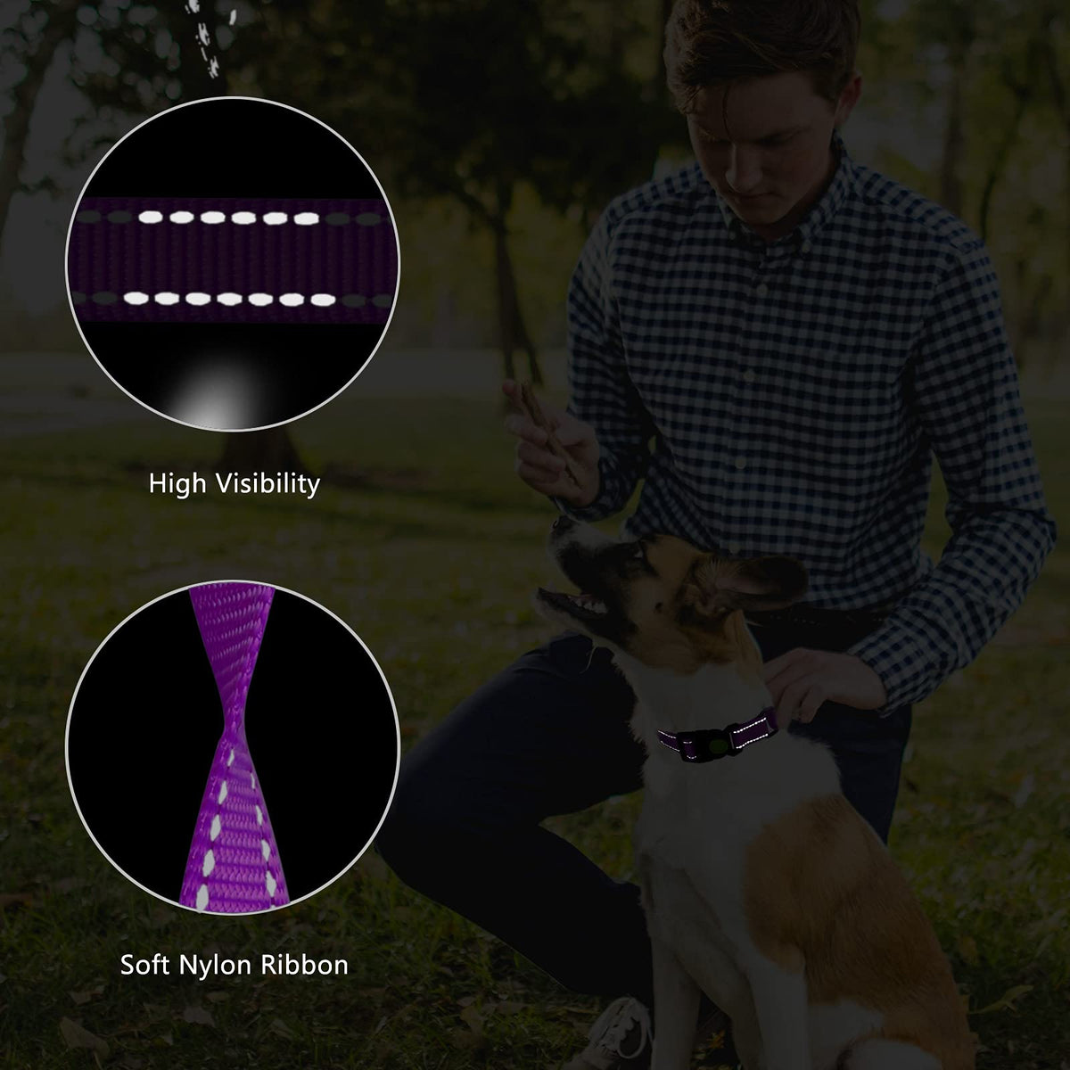 Q: What materials are used in the collar and leash?A: The collar and leash are made from high-quality 100% nylon, which is soft and comfortable for your dog. The buckle is eco-friendly plastic with a safety lock, and there are reflective stitches for visibility at night.