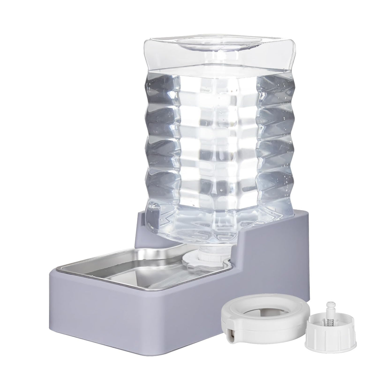 [8L Large Capacity] 8L water storage capacity is perfect for medium and large dogs.This pet waterer utilizes gravity to automatically refill water. This allows your pet to enjoy fresh, clean water at all times.The 9L capacity ensures a daily supply of water for kittens and is recommended for busy pet owners. | [Excellent Material] The automatic pet waterer is made of healthy and environmentally friendly PP material, no odor, durable, pets can use it safely for a long time. The drinking bowl is made of high quality 304 stainless steel, durable, not easy to deform, no rust, clean and hygienic, transparent container design can help you know when you need to add water. | [Triple Filtration]The cartridge is made of high-density nano-grade microporous filter cotton material, which can isolate impurity particles, remove residues and block other harmful substances from entering, and activated carbon can further recycle the water source, deeply soften the water, improve the taste and retain the pure minerals in the water, thus achieving a full purification of the living water source and avoiding various safety hazards brought about by water problems. | [Easy to Use] Automatic pet watering system with gravity fed design that replenishes your pet s water supply when it reaches low water level. The upgraded feeder adds two filters and two lids that can be used as replacements. | [Easy to Clean ] Split design makes every part of this automatic water dispenser very easy to disassemble and clean. It is suitable for both indoor and outdoor.