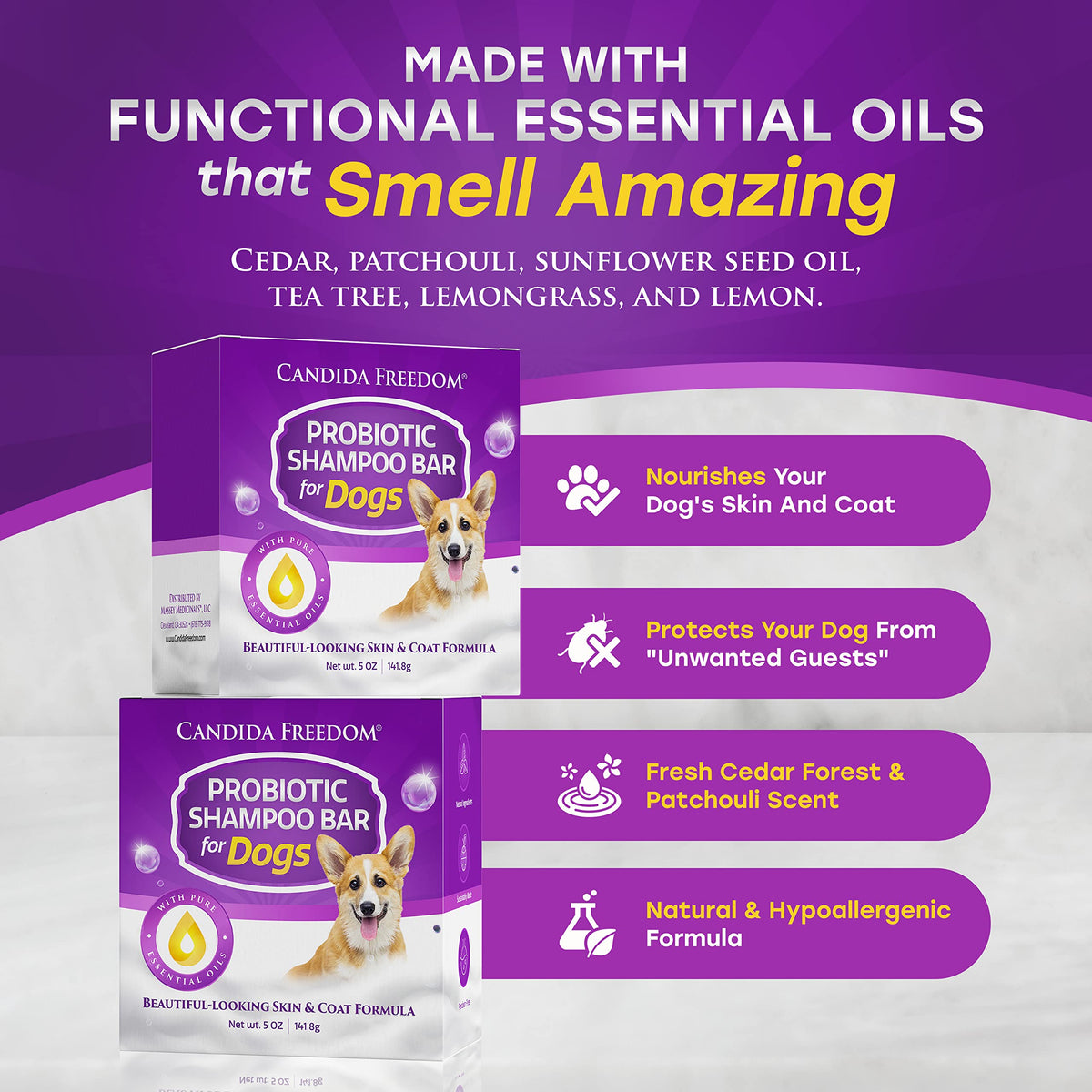 Introducing Massey'S Natural Dog Shampoo Bar, A Revolutionary Grooming Product Designed To Pamper Your Beloved Fur Baby With The Power Of Probiotics. Specially Formulated To Provide Gentle Cleansing, This Soap Bar Is Your Furry Companion'S Ticket To A Delightful Bath Time Experience. Is Your Furry Friend Struggling With Itchy, Sensitive Skin? Look No Further! Massey'S Unique Blend Of Probiotics Works Harmoniously To Ease Irritation. Our Probiotic-Rich Formula Helps Maintain A Healthy Skin Microbiome, Promoting Optimal Skin Health And Overall Well-Being For Your Canine Companion. Treat Your Furry Friend To A Spa-Like Experience With This Soap Bar, Enriched With The Goodness Of Essential Oils. Crafted With Care, That Nourishes Your Dog'S Sensitive Skin And Coat, Leaving Them Feeling Refreshed And Revitalized After Each Bath. Say Goodbye To Unwanted Guests Like Fleas And Ticks! The Soap'S Natural Essential Oils Act As A Gentle Repellent, Keeping Pesky Critters At Bay And Ensuring Your Pup Enjoys A Happy, Itch-Free Life. Revel In The Delightful Aroma Of Cedar Forest And Patchouli That Lingers On Your Furry Friend'S Coat, Making Cuddle Time Even More Enjoyable. Each 5Oz. Bar Offers Triple The Baths Compared To Liquid Soap Providing Excellent Value For Money And Ensures That Every Bath Is A Planet-Friendly Choice, Leaving No Harmful Residues Behind. Designed For Ultimate Convenience. The Solid, Easy-To-Hold Block Shape Ensures A Comfortable Grip, Making Bath Time A Breeze. When You Choose Massey'S, You'Re Not Just Opting For Exceptional Grooming Products But Also Embracing A Lifestyle That Values Natural Ingredients, Eco-Friendliness, And The Overall Health And Happiness Of Your Entire Family. Elevate Your Dog'S Bath Time With Massey'S Natural Dog Shampoo Bar, The Ultimate Blend Of Probiotic Power, Essential Oils, And Luxury. Treat Your Furry Friend To The Love And Care They Deserve, And Experience The Joy Of Having A Happy, Healthy, And Clean Pup By Your Side!