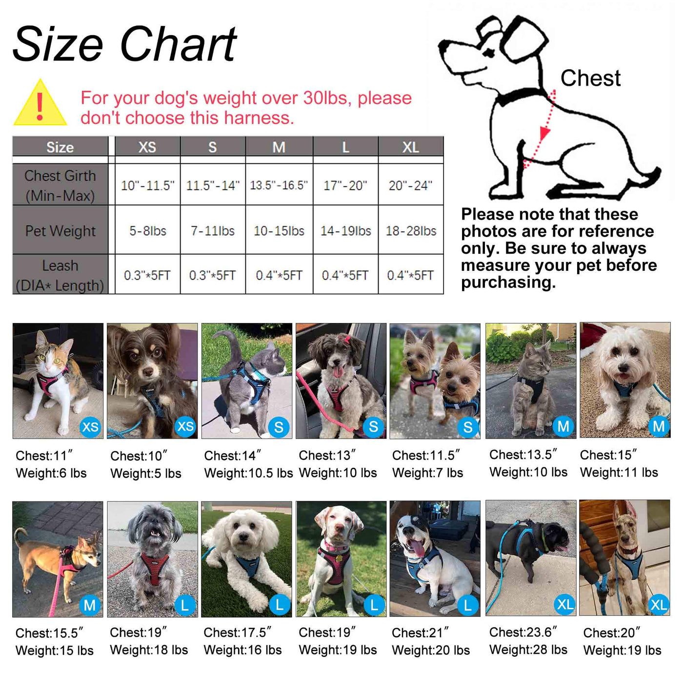 Package contents 1 X dog harness (Size: S, Color: blue) 1 X dog leash (Size: 0.3'' X 5FT, Color:blue)