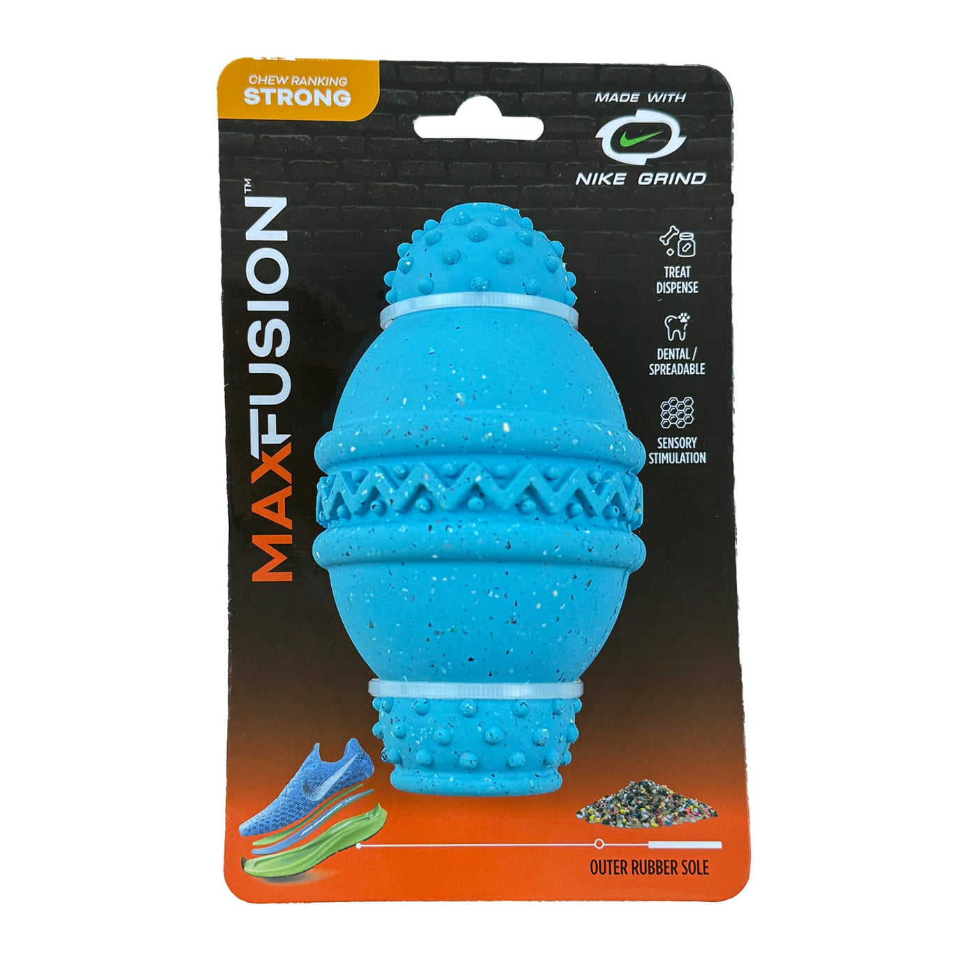 Can Sneakers Be Revived? Max Fusion Believes They Can. Nike Provides Max Fusion With Nike Grind Rubber From Manufacturing Scraps And Unused Materials That Max Fusion Repurposes Into Dog Toys. The Results Are Clean, Strong, Enjoyable Toys - Giving Nike Sneakers A Second Chance To Perform. Max Fusion With Nike Grind Is Made With 80% Natural Rubber And 20% Repurposed Nike Grind Rubber. These Toys Are Designed For Hours Of Engaging, Fun, Healthy Activity For Dogs.