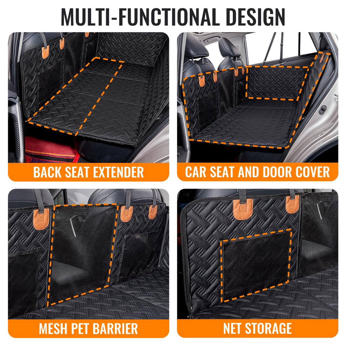 MAXFUT Dog Back Seat Extender,Back Seat Pet Cover for Dogs,Rear Dog Car Seat Cover for Back Seat,Hard Bottom Car Seat Cover for Dogs, Dog Seat Covers,Dog Hammock for Car ?Back seat into car bed?With MAXFUT back seat extender for dogs,the back seat of car turns into large dog bed.Great for traveling with your dog in a car. ?Prevent dog falls?While you are traveling, if you brake sharply or if your dog is more active, the dog may fall out of the seat.This is easily solved by installing back seat pet cover for dogs. ?Car seat an door protector?Dog hammock for truck can protect car seats & doors. Prevent the seats from being scratched by dogs. ?High quality PU leather?Hard bottom seat extender for dogs is made of waterproof, abrasion-resistant and scratch-resistant PU leather.And it's easy to clean. ?Universal Fitment?The size of the dog seat cover for back seat is 52*25in .First of all, the car seat should have a headrest bar.Back seat pet cover for dogs suitable for cars suvs and small trucks.