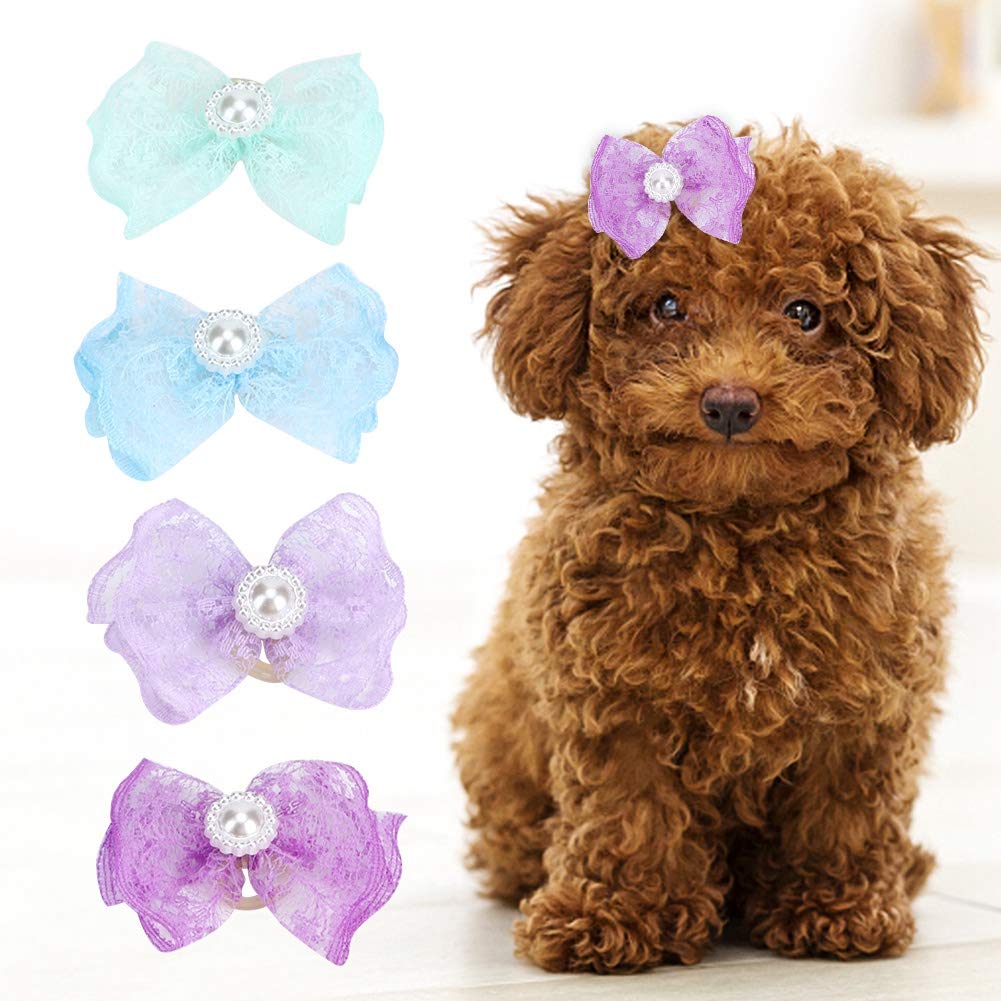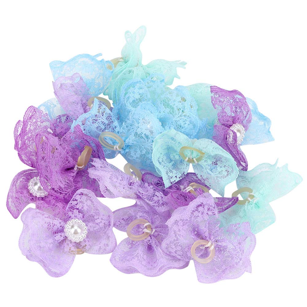 Maxmartt 20Pcs Pet Bowknot, Multicolor Hair Lace Bowknot Bows Grooming Accessories For Cat Medium Small Dog