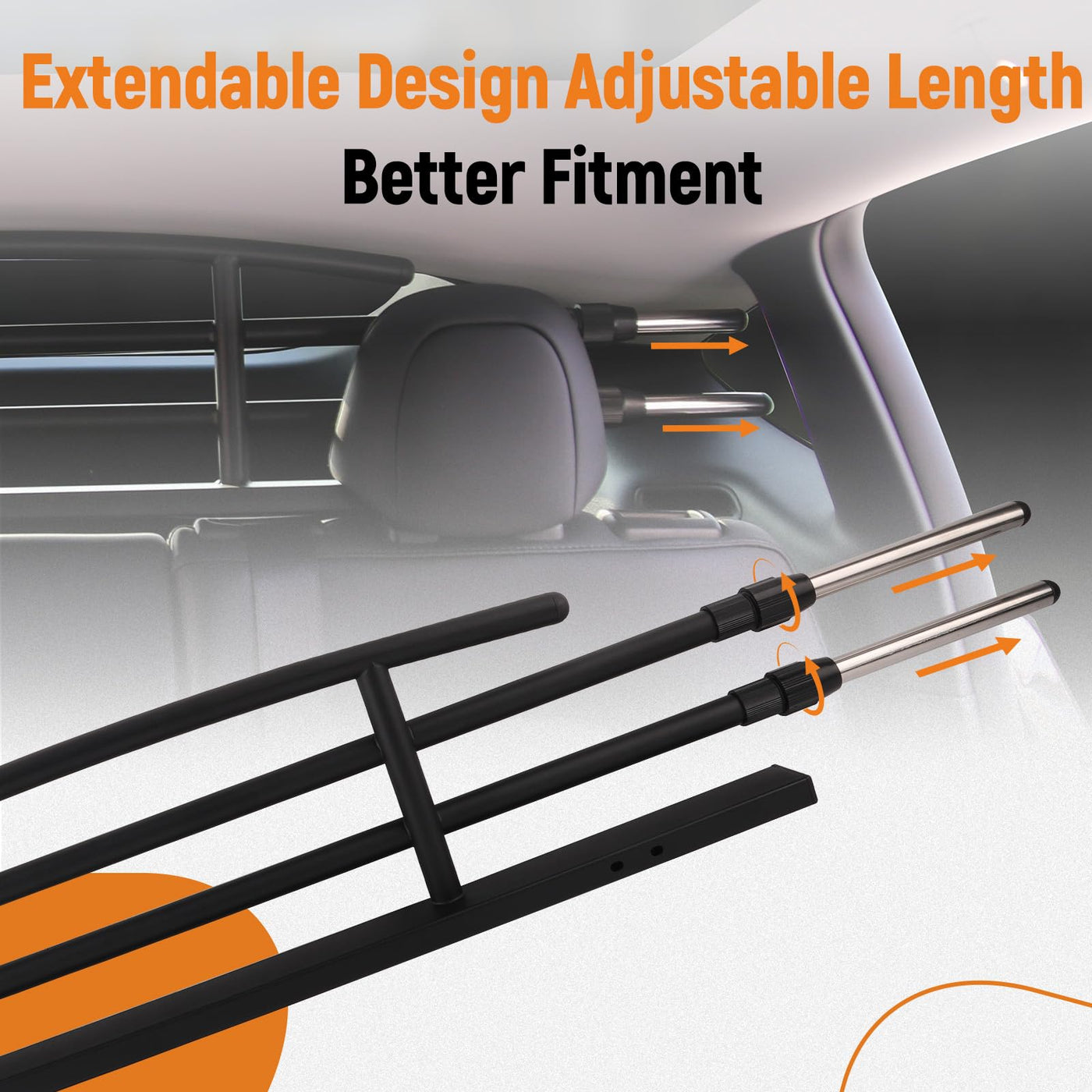 Installation Guide Step 1: Unscrew The Cover On The Rod. Step 2: Pull Out The Barrier Rod. Step 3: Adjust To The Desired Length. Step 4: Screw The Cover Back On. Step 5: Install The U-Shaped Screws. Step 6: Insert The Screwdriver Into The Hole, Press The Button, And Unlock The Headrest. Step 7: Lift The Headrest. Step 8: Remove The Headrest. Step 9: Align The Holes With The Headrest Posts. Step 10: Reinsert The Headrest. Step 11: Press The Headrest Down. Step 12: Tighten The Nuts. Step 13: Put On The Nut Covers, And Install Complete. &Nbsp; Compatible Vehicles: This Dog Car Barrier Is Fit For 2021 2022 2023 2024 Tesla Model Y. Material: Made Of Three-Layer Abs+Aluminum Alloy, Wear-Resistant And Bite-Proof. Package Includes:&Nbsp;1 X Pet Barrier&Nbsp;And Some Small Components.