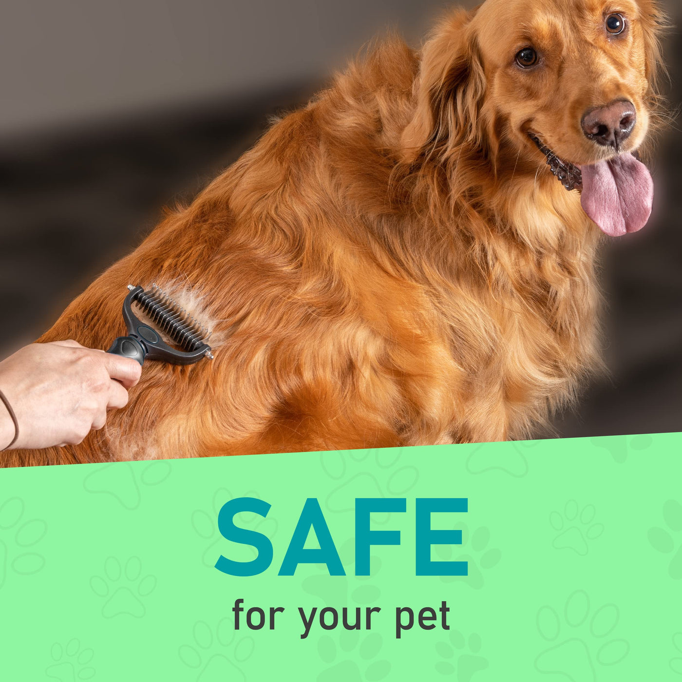 : This pet brush is perfect for grooming your pets coat Designed with a dual-sided design start with the 9-teeth side to tackle stubborn mats and tangles and finish with the 17-teeth side to thin out and deshed your pets fur : Our dog hair brushes are designed with sharpened but finely rounded teeth The deshedder brush for dogs allows you to easily and safely remove mats tangles knots and loose hair without irritation or scratching : This dematting and deshedding comb gently removes loose hair and eliminates tangles knots dander and trapped dirt The perfect cat hair brush and dog grooming brush solution for pets with thick fur or dense double coats : Keep your pets coat clean and healthy with our undercoat rake for dogs This dog brush is designed with a lightweight comfortable non-slip rubber handle to keep the brush from moving around as you groom your pet : Our dog and cat grooming brushes are must-have pet supplies for your furry friend A great gift for pet lovers who want to keep their pets healthy and well-groomed