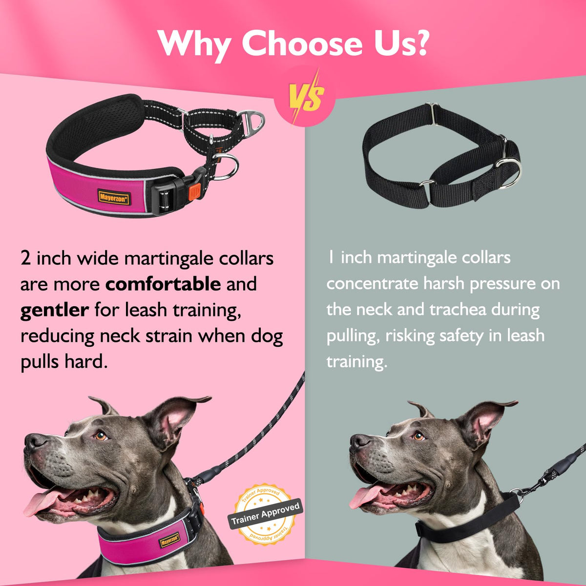 Mayerzon 2 Inch Wide Martingale Collar For Large Dogs, Patented No Pull Walking Training Dog Collar For Pitbull German Shepherd,