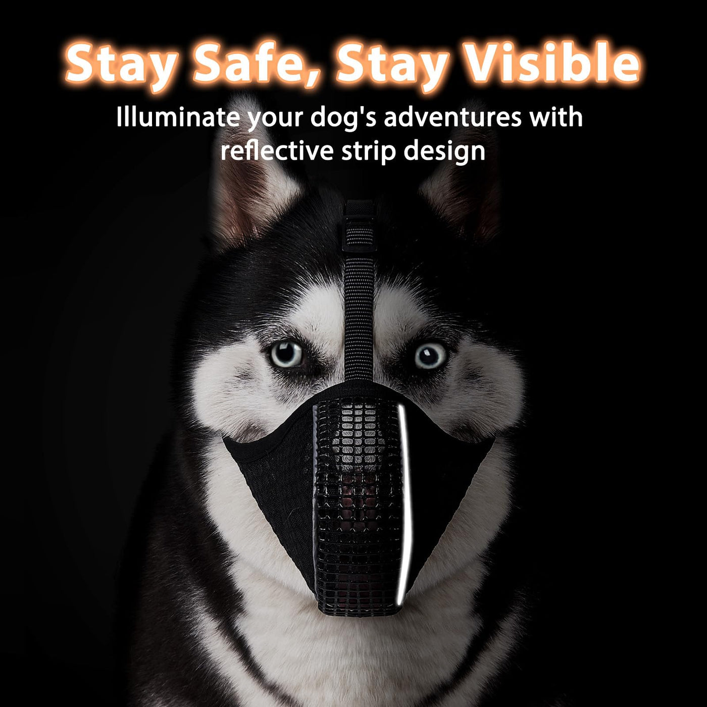 Mayerzon Dog Muzzle, Mesh Reflective Muzzle For Small Medium Large Dogs In Nighttime Walks, Soft Fully Closed Mouth Guard Anti B