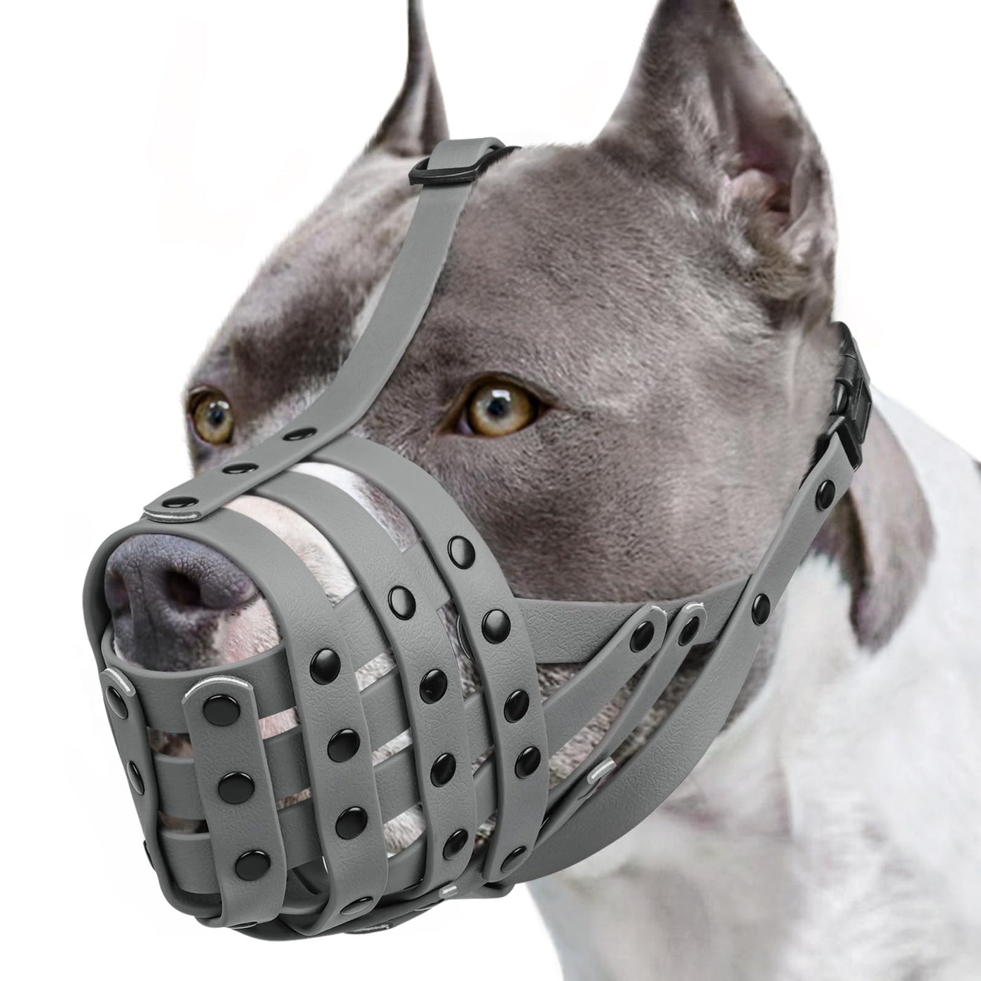 Mayerzon Pitbull Muzzle, Lightweight Basket Muzzle for Large Medium dogs Rottweiler Amstaff to Prevent Biting Eating, Safe for Grooming Vet Visits Training, Allows to Pant Drink, Adjustable & Sturdy