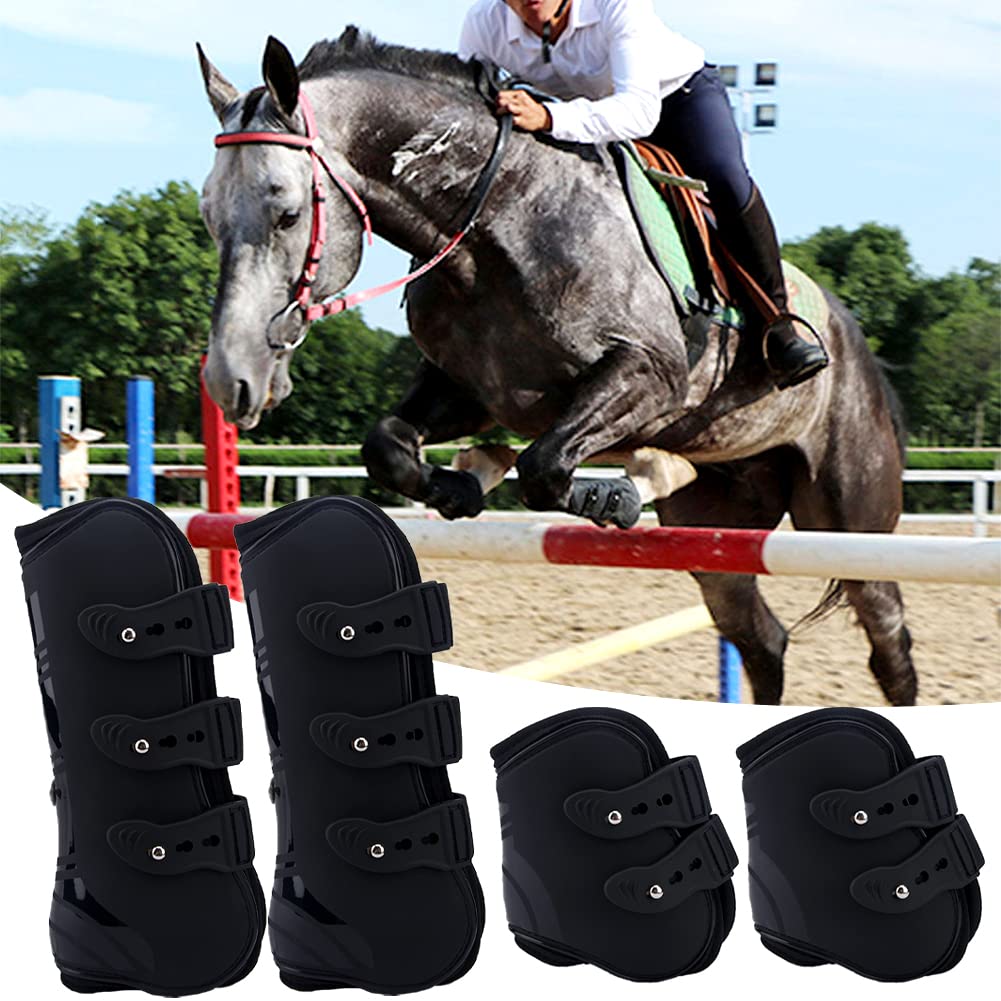 MAYiT Horse Tendon Boots (4 pcs - Front & Hind), PU Shell Tendon Fetlock Brace Guard Boots for Riding Shock Absorbing Jumping Co
