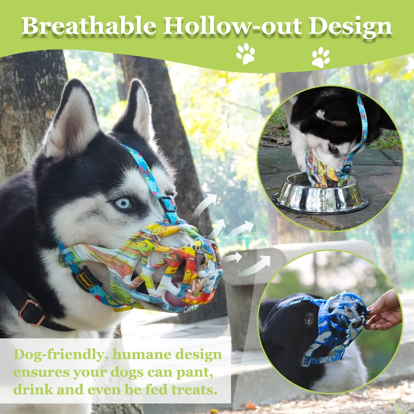 Mayrezon Dog Muzzle, Printed Basket Muzzle For Small Medium Large Dogs Dachshund, Beagle, German Shepherd, Breathable Pet Muzzle