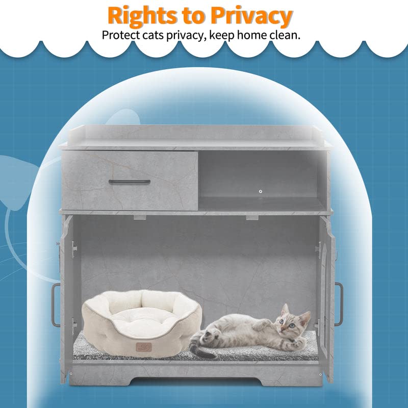 MCombo X-Large Cat Litter Box Furniture Hidden with Drawer, Pet Enclosed Litter Bench, Wooden Hideaway Extra Large Indoor Cat Ho
