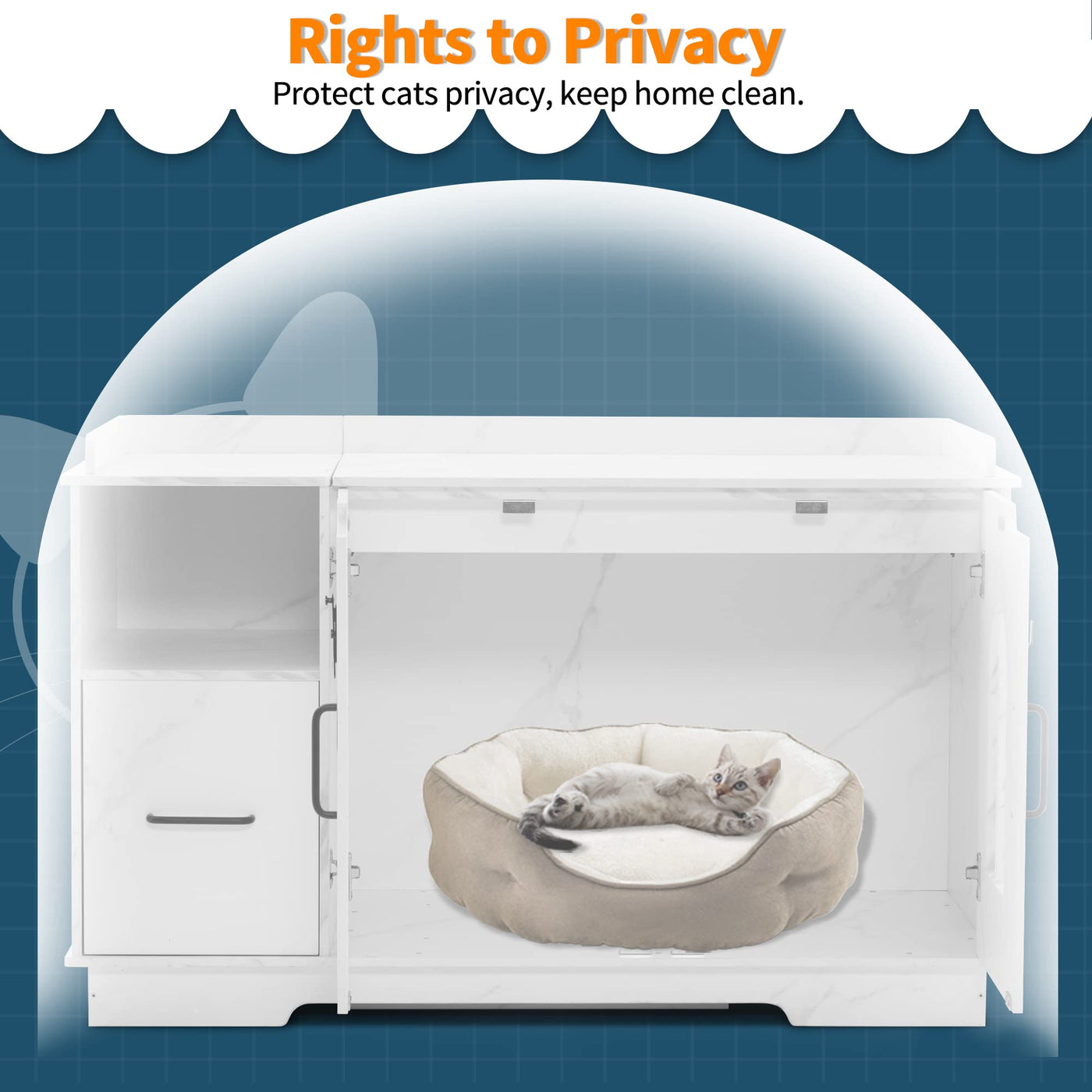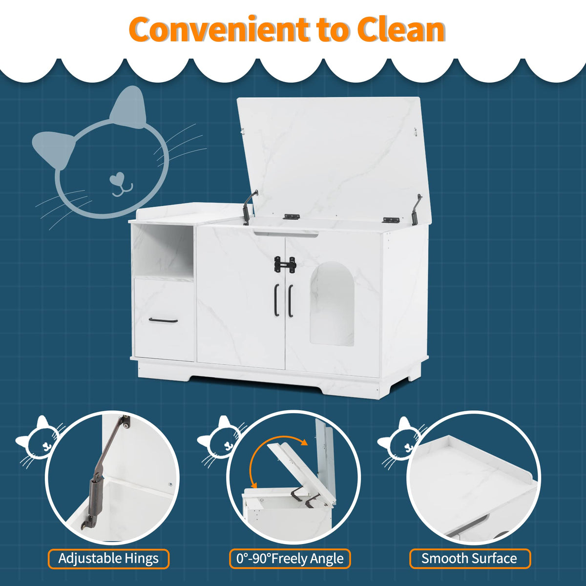 MCombo X-Large Cat Litter Box Furniture Hidden with Top Opening, Pet Enclosed Litter Bench with Drawer, Wooden Hideaway Extra La