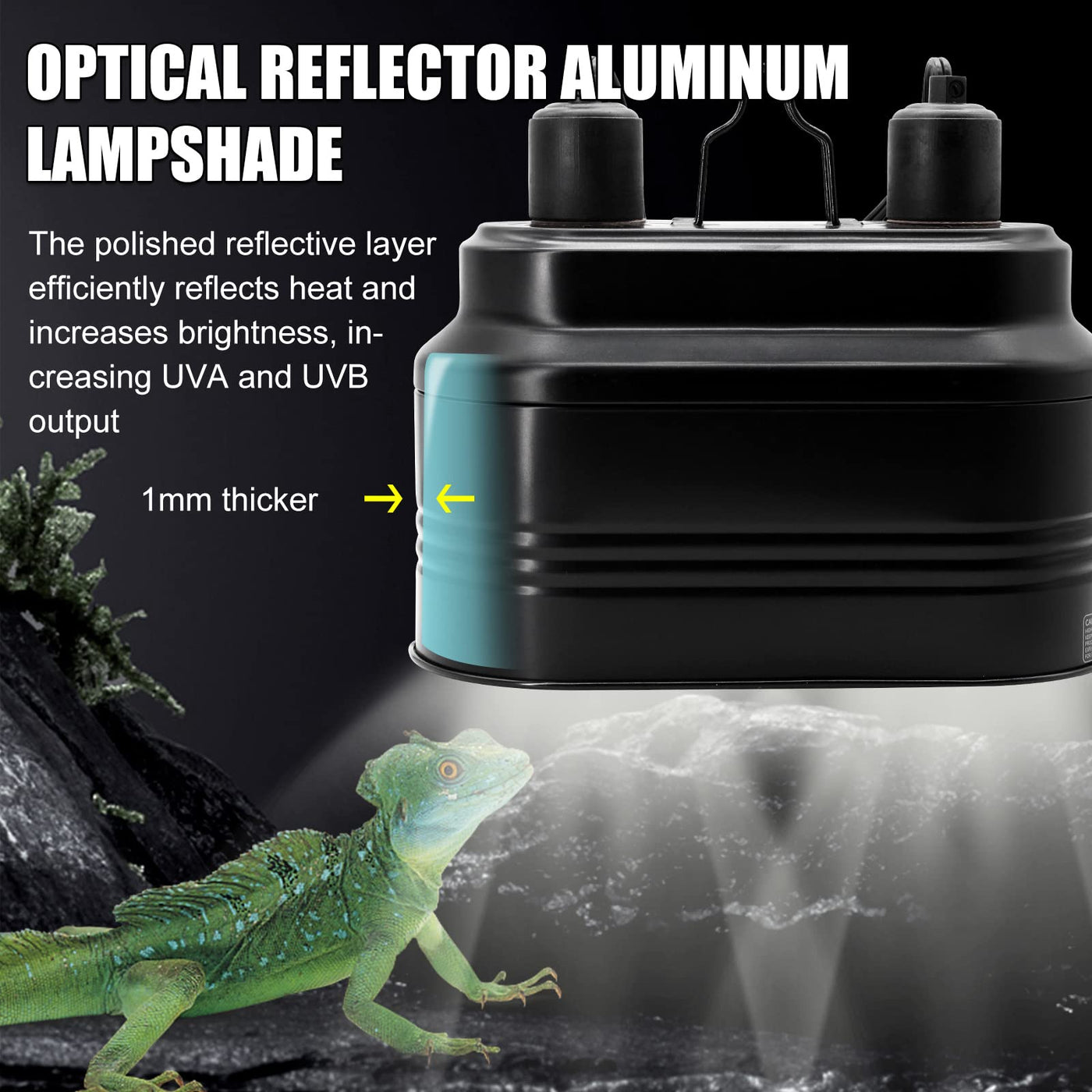 Mecesor Dual Reptile Lamp Fixture With Independent Switches, Uvb & Basking Bulb Holder For Glass Terrarium Habitat - Heat Light