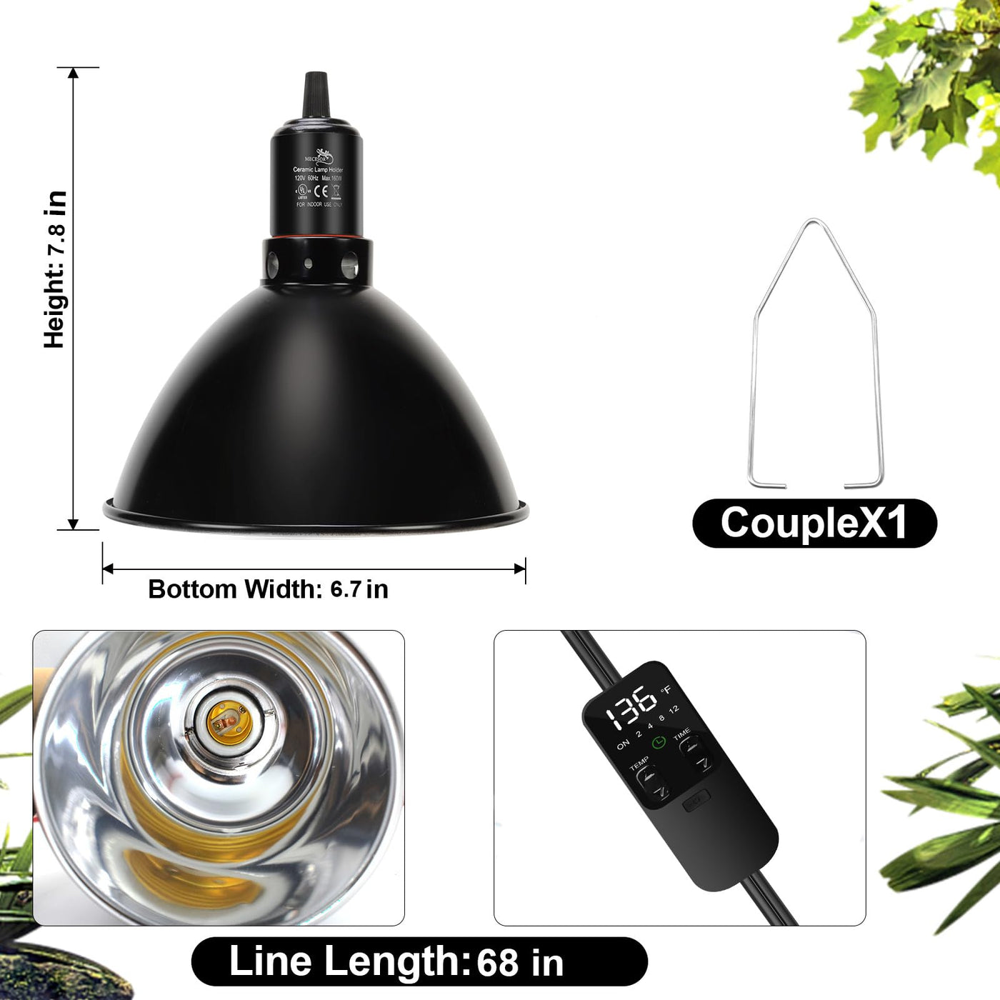 Mecesor Reptile Light Fixture With Thermostatic Timer, 8.5 Inch Deep Dome Lamp Cap Reptile Heat Lamp Fixture With Separate Switches The Basking Light Fixtures For Bearded Dragon Has A Led Digital Screen Can Directly Display The Setting Value. You Can Set A Suitable Temperature And Timing According To Your Reptile'S Needs. Besides The Mode ''Always On'', You Can Set The Timer For 2?4?8?12 Hours According To Your Needs. Our Reptile Heat Lamp Fixture Will Give Your Pet With A Nice Living Environment. Our Reptile Heat Lamp Fixture With Separate Switch Is Perfect For Reptiles, Amphibians, And Small Animals Such As Bearded Dragons, Geckos, Turtles, Tortoises, Lizards, Snakes, Chameleons, Frogs, Etc. Specification: Item Name: Reptile Light Fixture With Thermostatic Timer Color: Black Package Included: 1 X 8.5Inch Reptile Heat Lamp Fixture With Thermostatic Timing