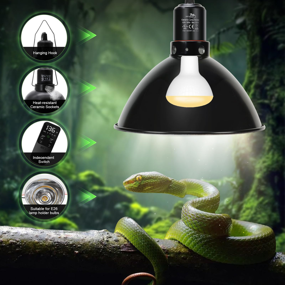 Mecesor Reptile Light Fixture With Thermostatic Timer, 8.5 Inch Deep Dome Lamp Cap Reptile Heat Lamp Fixture With Separate Switc