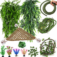 Q: How do these decorations enhance my reptile's habitat?A: These decorations create a natural atmosphere, adding greenery and providing climbing opportunities. They help your pets feel more at home, offering them a dynamic environment that mimics their natural habitat.
