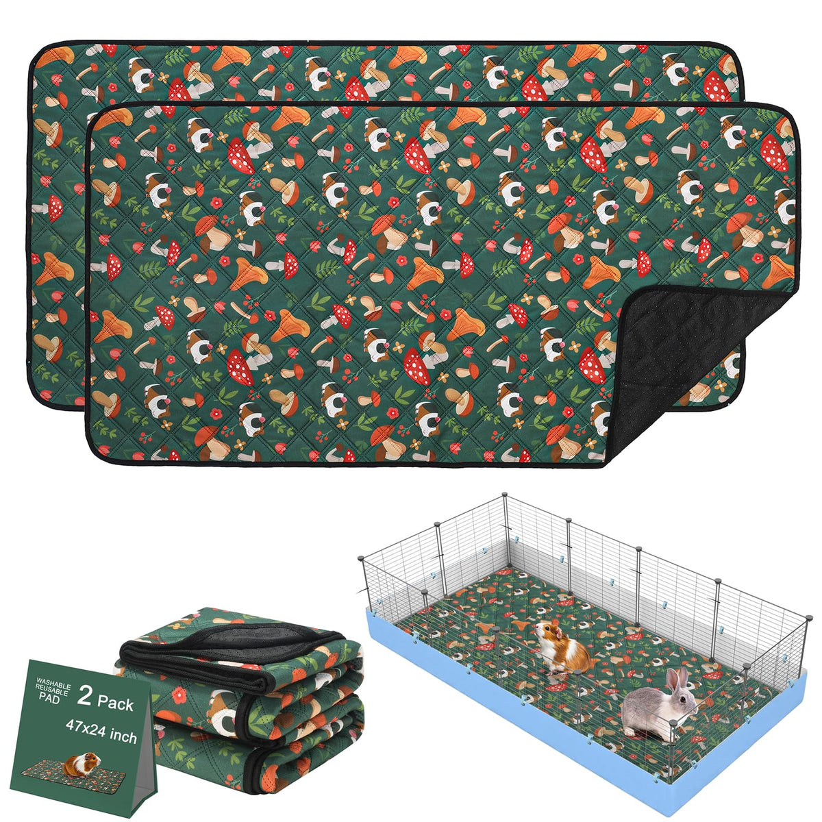 Mechpia 2 Pack Guinea Pig Cage Liners - Washable 47''X24'' Bedding Pee Pad, Super Absorbent, Waterproof & Anti-Slip Reusable Mat