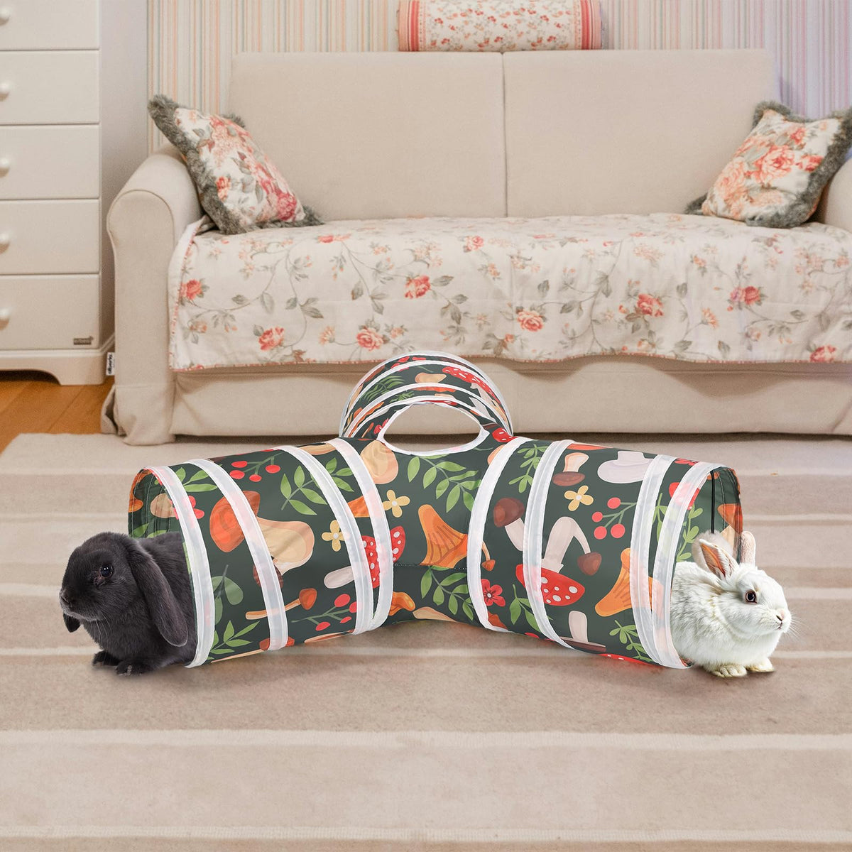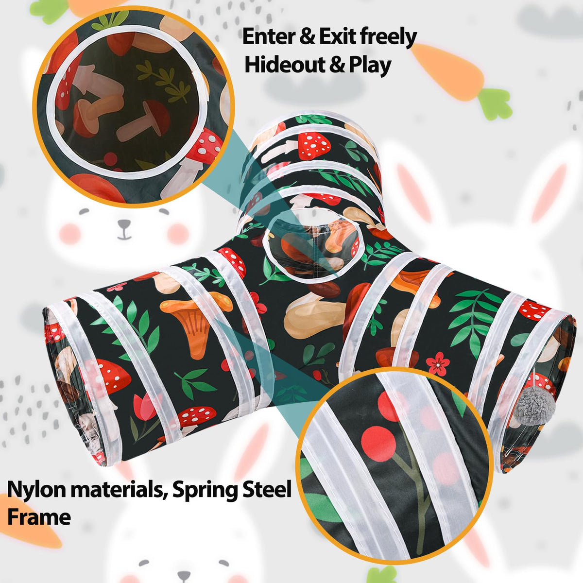 Bunny tunnel can improve interest, curiosity and movement from your rodent friends, such as rabbits loves push it around the tunnel or cage shred ball toys to break boredom.