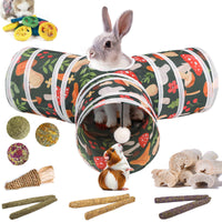 Mechpia Rabbit Toys, Bunny Tunnels and Tubes with Chew Toys for Grinding Teeth Bamboo Carrot Loofah and Grass Ball for Rabbit Gu
