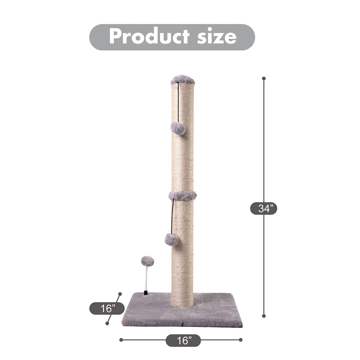 Mecool Basics Cat Scratching Post Two Sizes Are Designed For Kittens And Adult Cats Featuring A Naturally Fibrous Construction, Your Cat Will Take Great Joy In Clawing The Rope Pillars And Batting Around The Included Interactive Toy With Hanging Ball Attachment Helps Keep Your Cat From Damaging Carpets, Furniture, Curtains, And More You Can Put The Cat Tree Next To The Bed, Window Or Anywhere In The Houseneutral Color Tones Fit In With Your Homeas Existing Decor Easy To Install Just Screw All The Parts Together And The Cat Scratching Post Is Ready To Use (Including Screws)