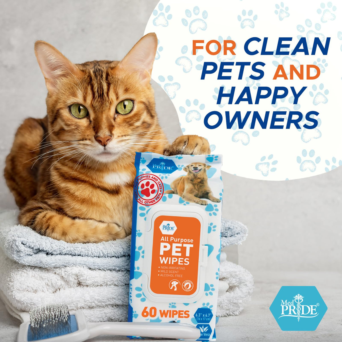Medpride'S Soft Pet Wipes For Cats Hypoallergenic Formula Allows You To Unleash The Power Of Gentle Cleaning. Perfect For Your Furry Friends, These Wipes Are Ideal For Cleaning And Deodorizing. These Wet Wipes For Cats Are Suitable For Paws, Faces, Fur, And Backside, Especially Handy After A Muddy Walk. Say Goodbye To Harsh Shampoos And Hello To Our Kitty Wet Wipes That Won'T Irritate Your Pet'S Skin. Our Hypoallergenic Pet Wipes Are 100% Hypoallergenic, Ensuring A Comfortable Clean For Any Area. These Cat Wipes Unscented And Free From Parabens And Alcohol, Are Perfect For Daily Use, Even For The Most Sensitive Animals. Experience The Nourishing Benefits Of Aloe Vera With Our Vera Pet Grooming Wipes. Infused With Soothing Aloe Vera, These Wipes Not Only Clean But Also Nourish Your Pet'S Fur And Skin. These Pet Supplies Leave Your Pets Feeling, Looking, And Smelling Fresher Than Ever. Appreciate The Ease Of Our One-Hand Dispense Dog Supplies. Measuring 6.3X 6.7, These Waterless Pet Wipes Are Robust Enough To Clean Any Pet With Just One Wipe. Available In 3 Value Packs, These Dog Grooming Supplies Keep The Wipes From Drying Out, Ensuring They Stay Clean And Moist For Longer. Place Your Order With Confidence For Our Dog Bath Supplies, Knowing That Medpride Is A Trusted Supplier Of Effective, Top-Quality Medical Products. With A 30-Day Money Back Guarantee, You Have Every Reason To Choose Medpride For All Your Cat Grooming And Personal Care Supplies.