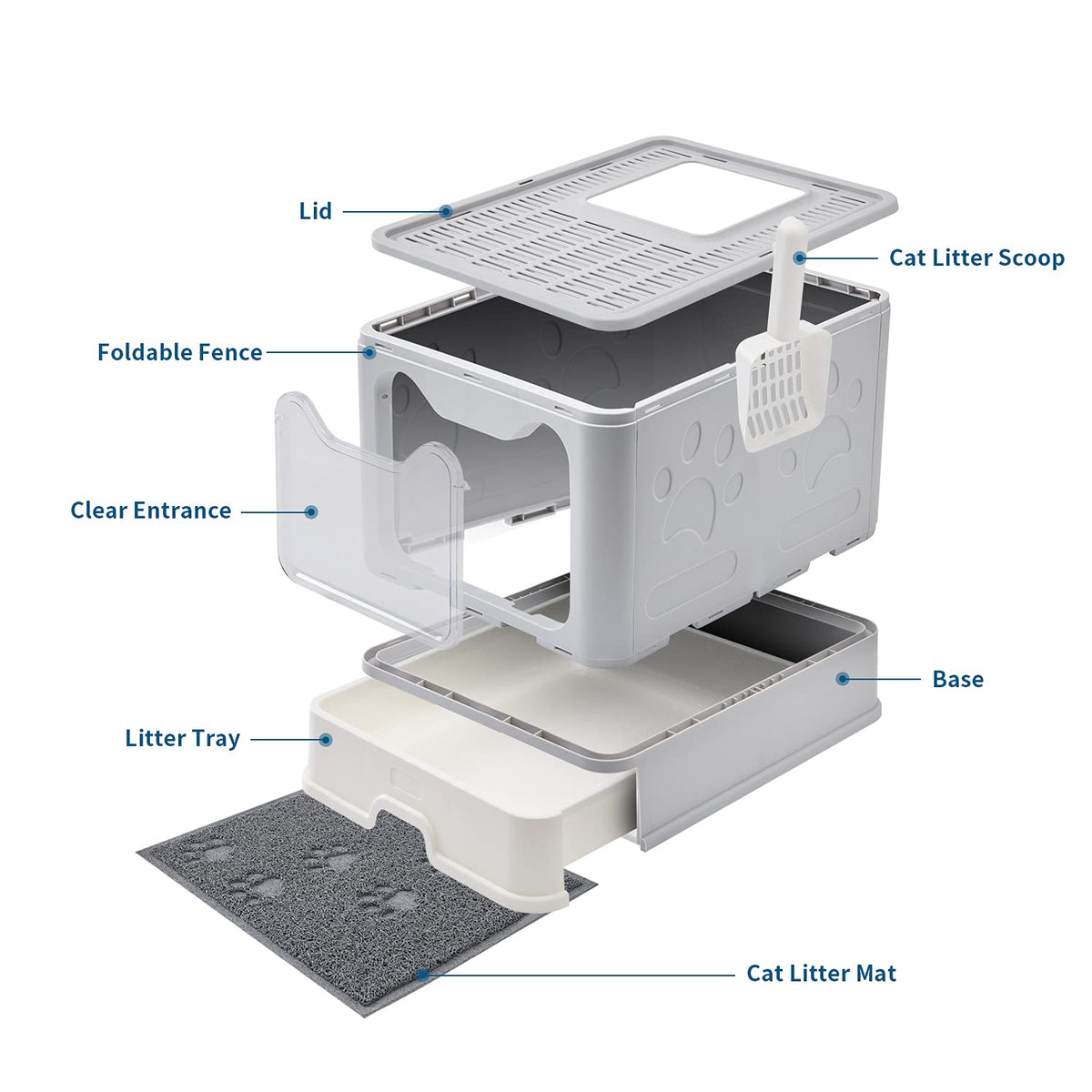 Enclosed Layout] - One-way design front in and top out the self-closing front entryway leaves odor and dirt inside The top sand pedal prevents the cats litter from being sprayed everywhere The enclosed structure secures pet cats privacyA Easy to clean] - The pull-out drawer design litter tray and included litter scooper make cleansing of litter a lot easier Easy for cleaning the feline clutter with minimal mess Mat is easy to clean with a non-slip back also suitable to place under feeding bowls to catch spill Foldable and Portable] - The retractable layout of the cat litter box is hassle-free for storage space set up as well as take apart Space-saving as well as mobility features enable you to utilize our productAanytimeAor any place your pet cats need it Ideal choice for traveling Spacious Design] - cat commode with huge internal space which is effortless for cats to go into and also exit and turn around The space decreases the odor emission in your home and keeps the air fresh Environment Friendly Product] - The cat litter box with lid is made of stain resistant plastic It can be flexibly folded and easy to clean providing a neat living environment for your cat The litter matA is made of safe high quality PVc material that is BPA-Free and Phthalate-Free
