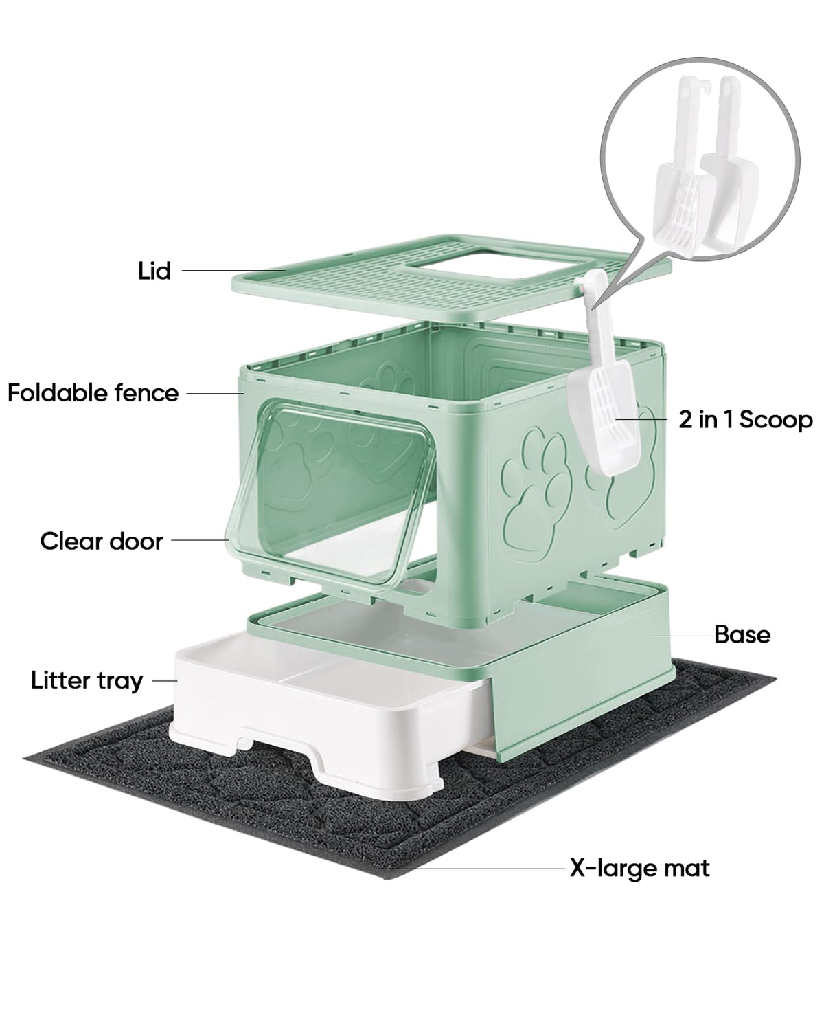 Material:Pp+Ps Color:Grey/Pink/Blue Folded Size:51*41*12.5Cm/20.1X16.2X5Inch Expanded Size:51*41*38Cm/20.1X16.2X15Inch Net Weight:2.76Kg Recommendation: Cats Of All Ages Package Include: 1 X Cat Litter Box 1 X Scoop 1 X Cat Litter Mat